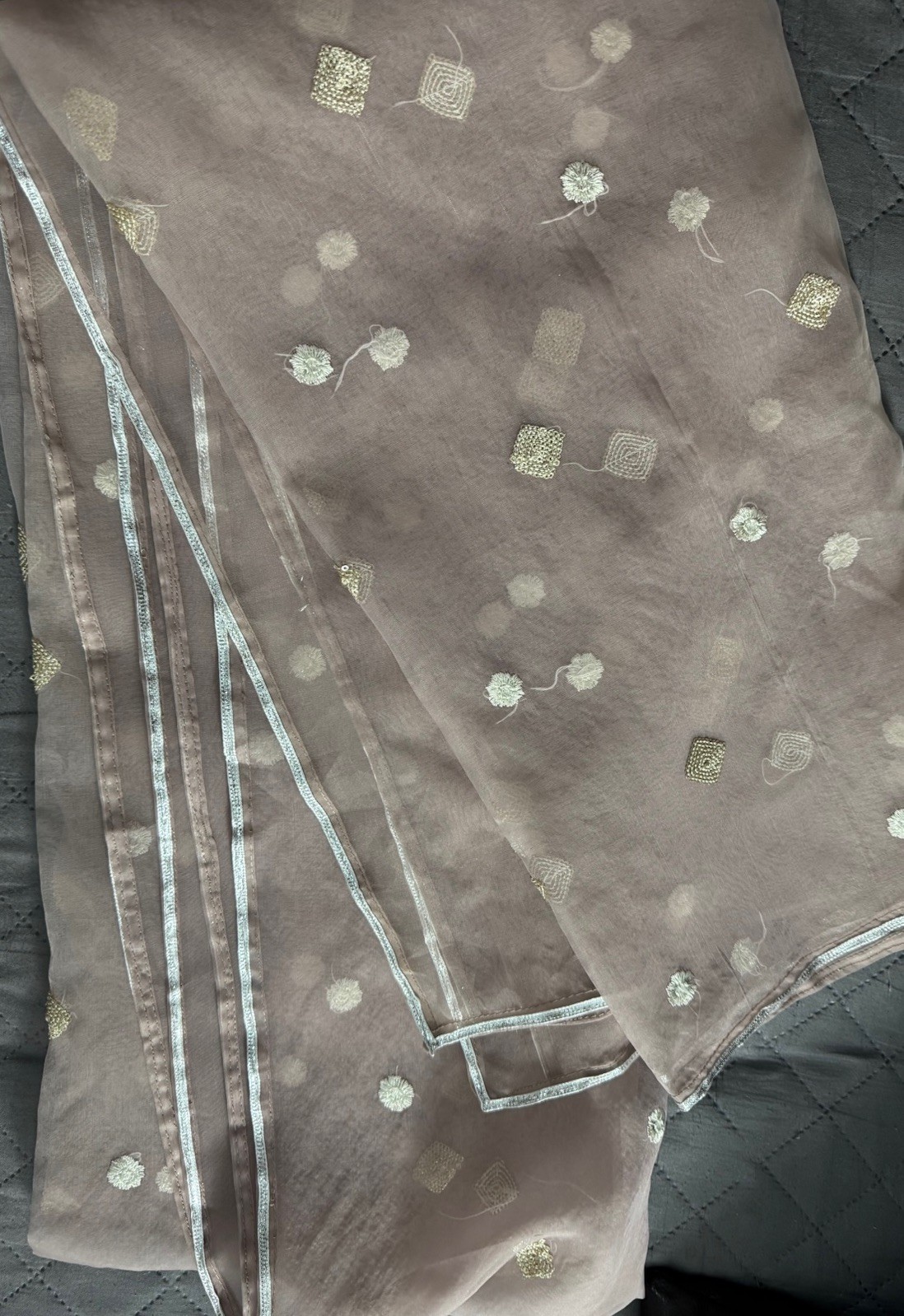 Ladies Pakistani Indian Party Wear Shalwar Kameez Dupatta Large Beige