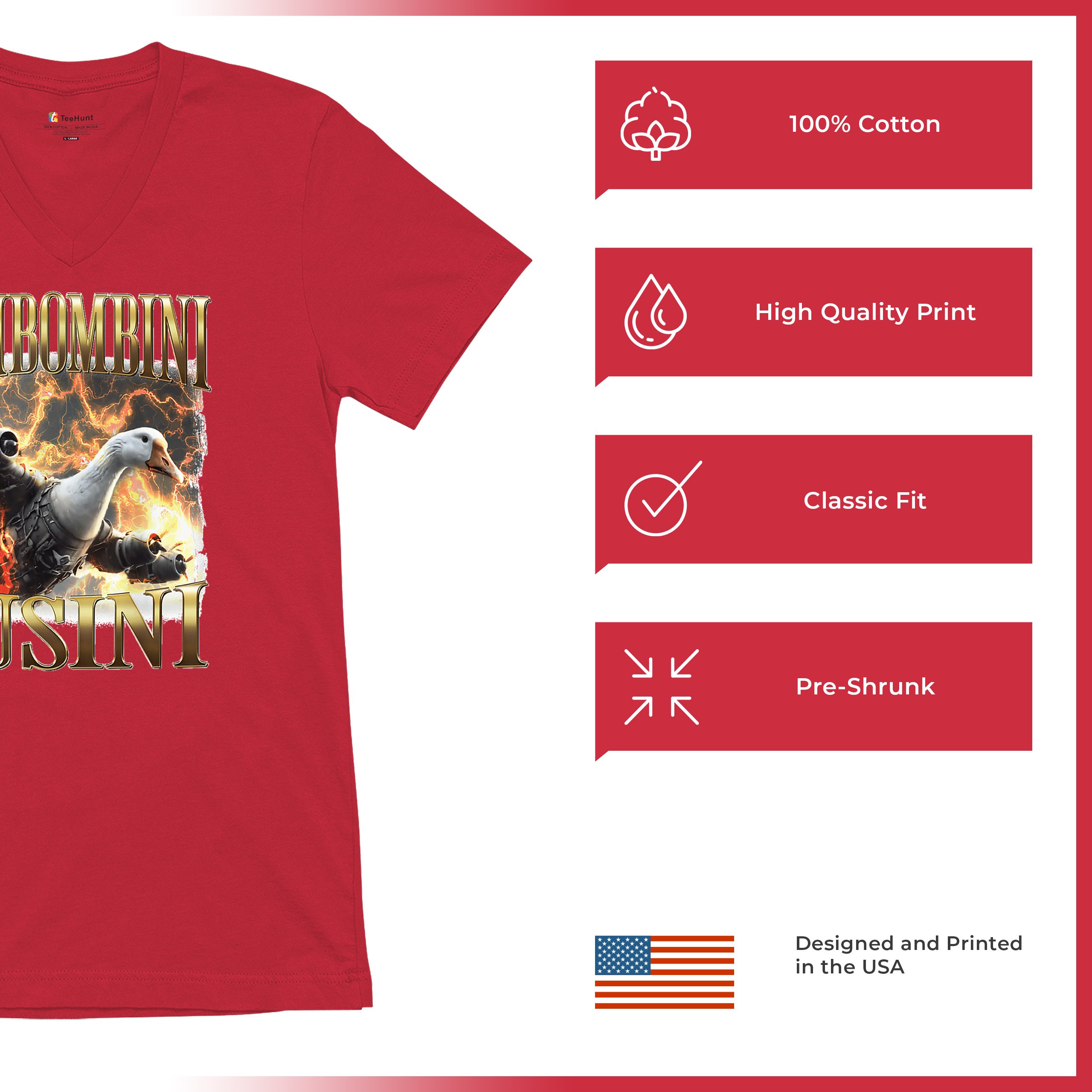 как выглядит Bombombini Gusini Mens V-Neck T-shirt Fun Italian Brainrot Gen Z Alpha Meme фото