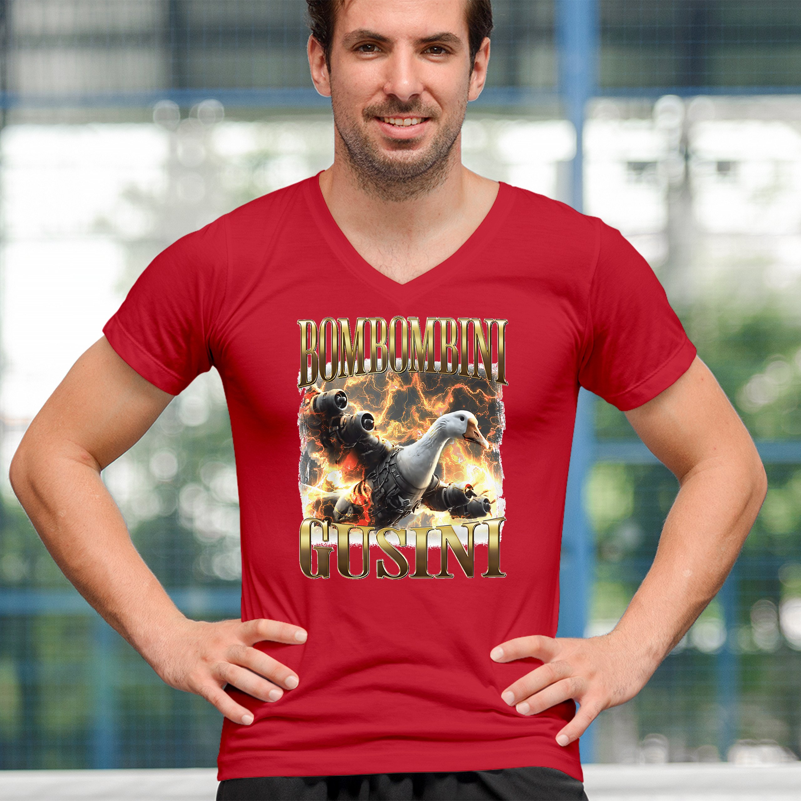 Bombombini Gusini Men's V-Neck T-shirt Fun Italian Brainrot Gen Z Alpha Meme