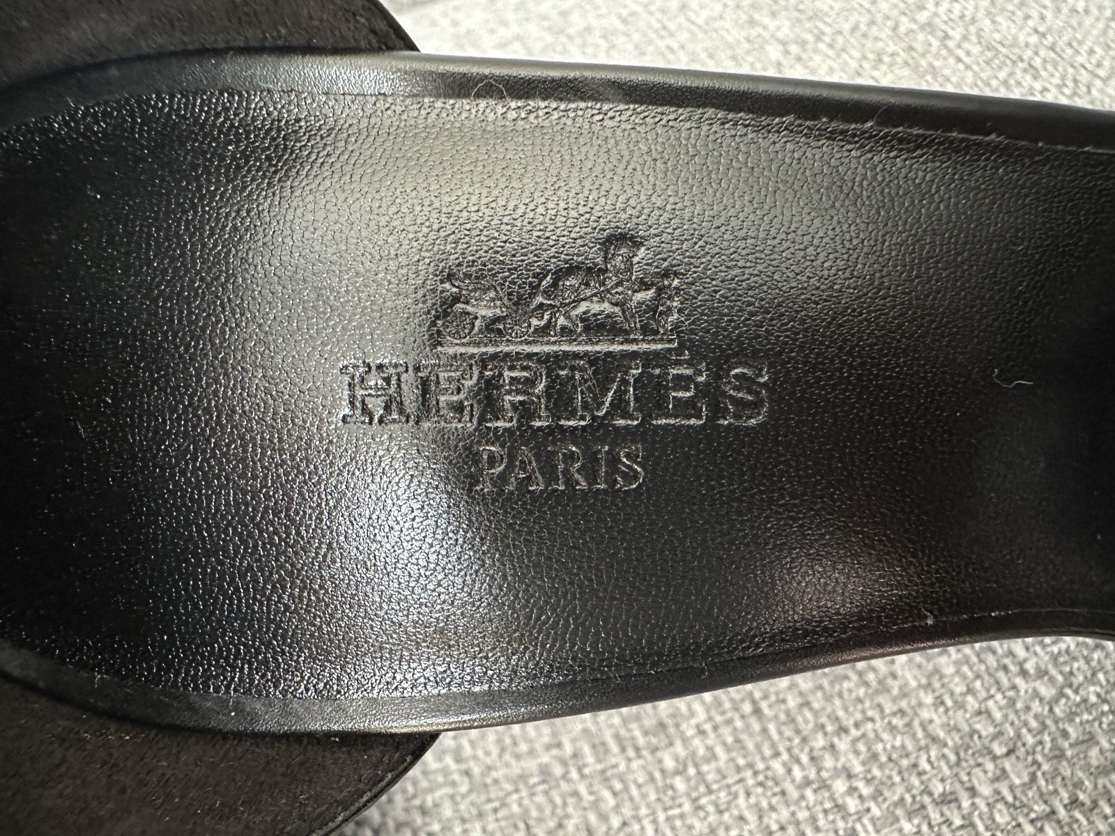 как выглядит Hermes Joy 105 Noir Black Calfskin Leather Smooth Ankle Strap Sandal Heels 37 фото