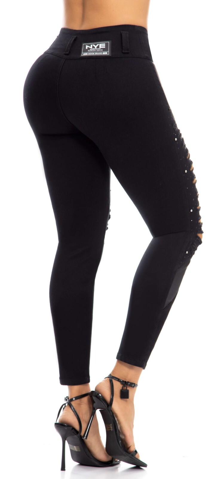 NYE JEANS COLOMBIANOS, Women Butt Lifter Fashion Rhinestone Black Denim 64154