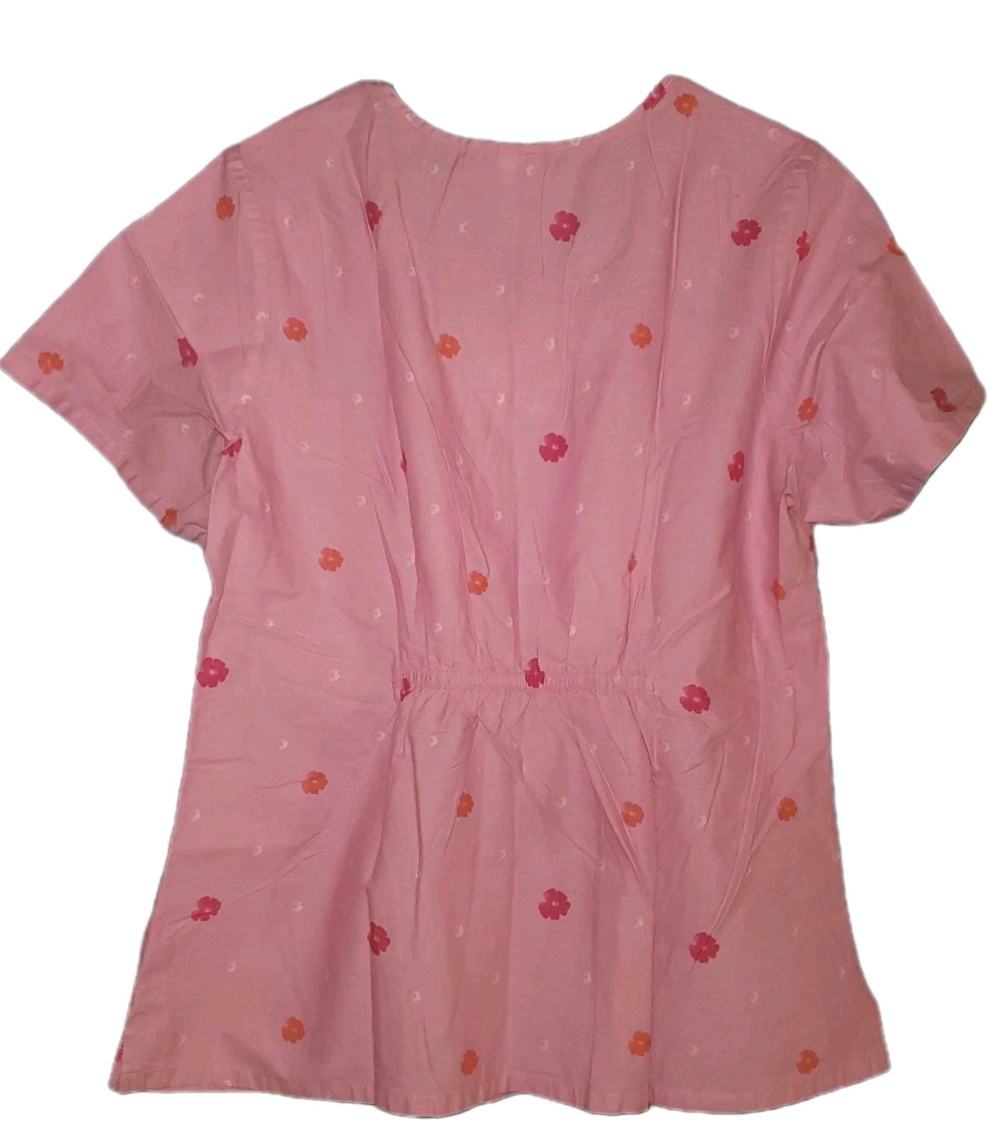 Disney Bambi Thumper Pink Red Floral Border Square Neck Scrub Top Womens Sz XL