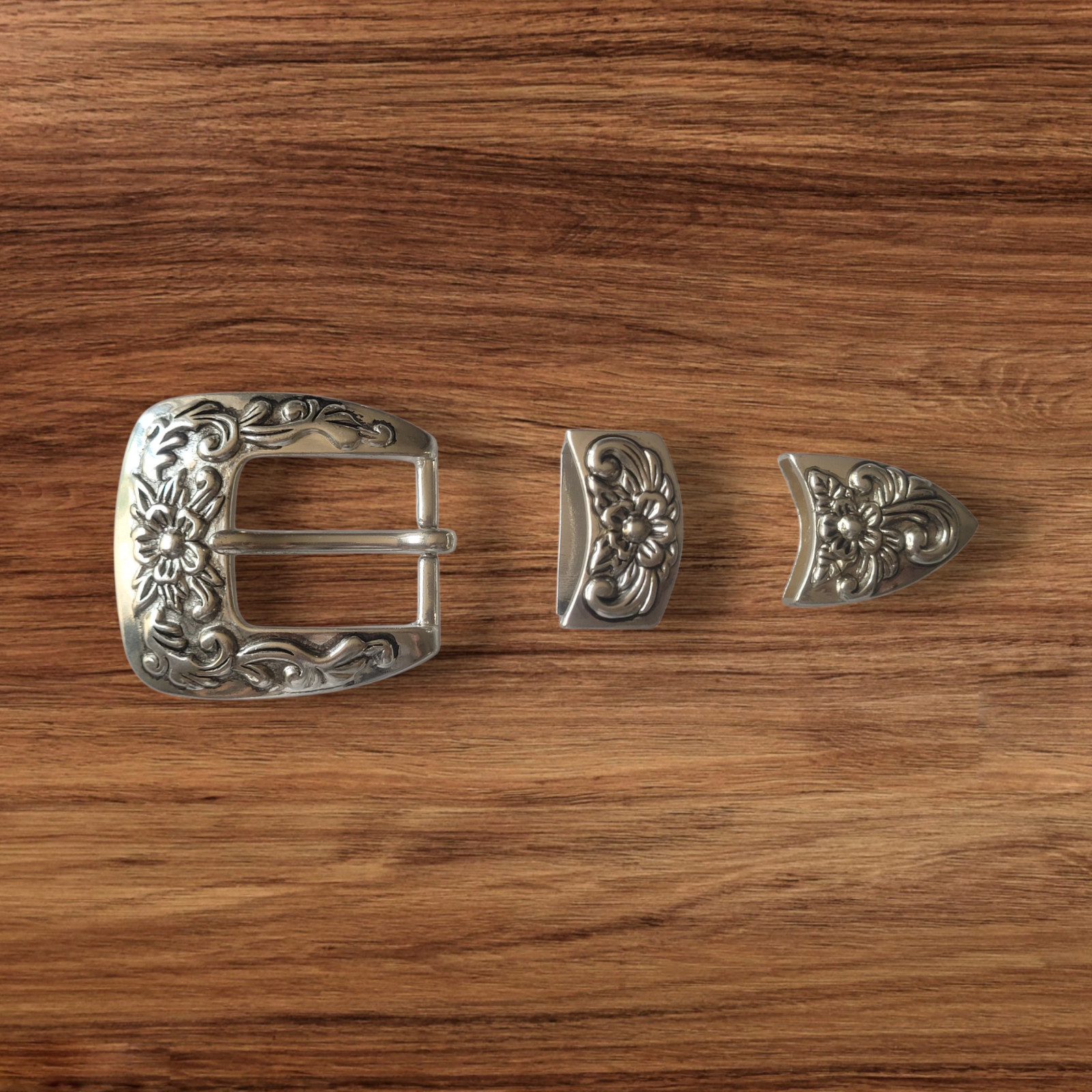 Nickel Western Cowboy Belt Buckle Set of 3 - Flowers - Fits 1 Belt