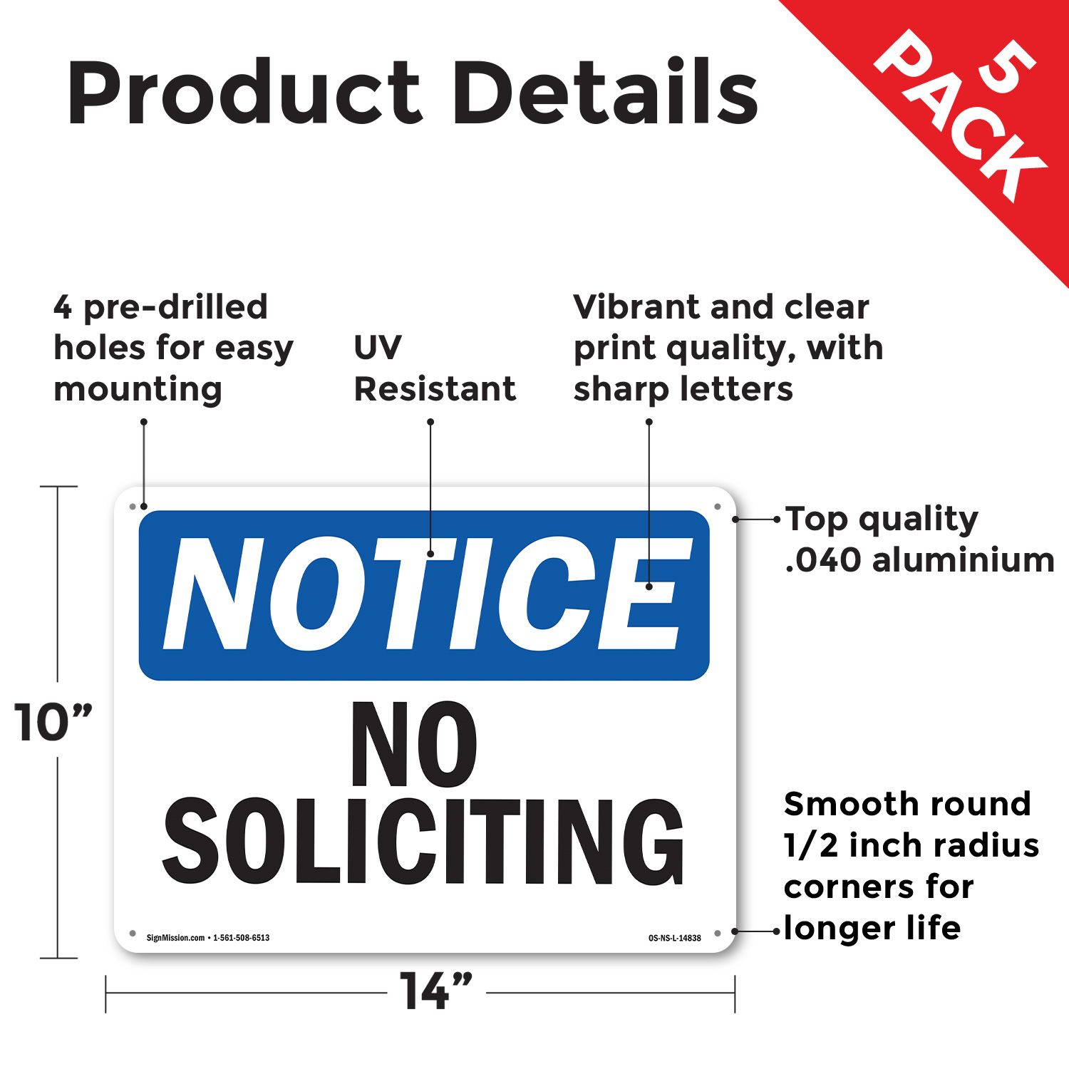No Soliciting OSHA Notice Sign Metal, Plastic, Or Decal - 5 or 10 Pack