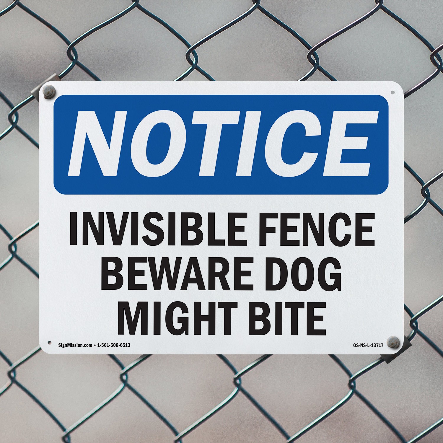 Invisible Fence Beware Dog Might Bite OSHA Notice Sign Or Decal - 5 or 10 Pack