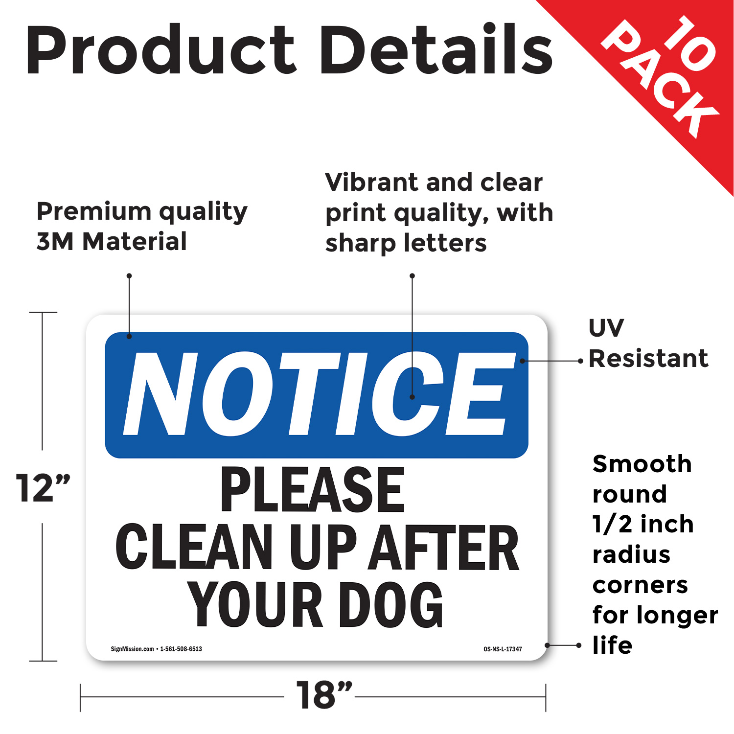 как выглядит Please Clean Up After Your Dog OSHA Notice Sign Metal,, Decal 5 or 10 Pack фото