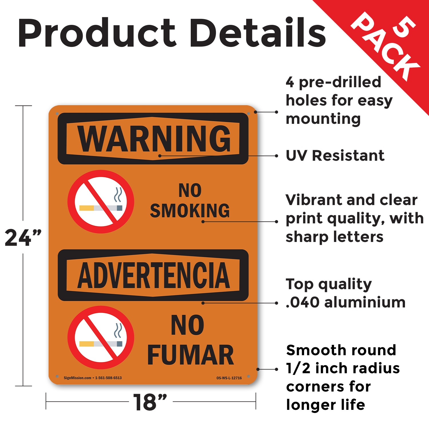 как выглядит No Smoking OSHA WARNING Sign Metal, Plastic, Or Decal - 5 or 10 Pack фото