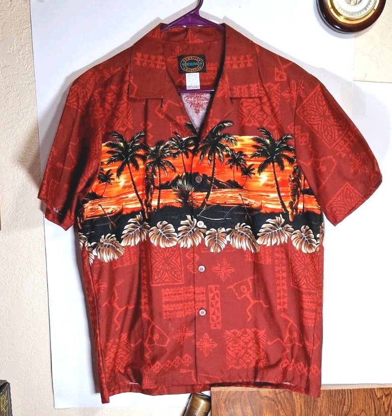 Hawaiian Reserve Collection Button Up Shirt Luau Palms Tiki Canoe Hawaii Vintage