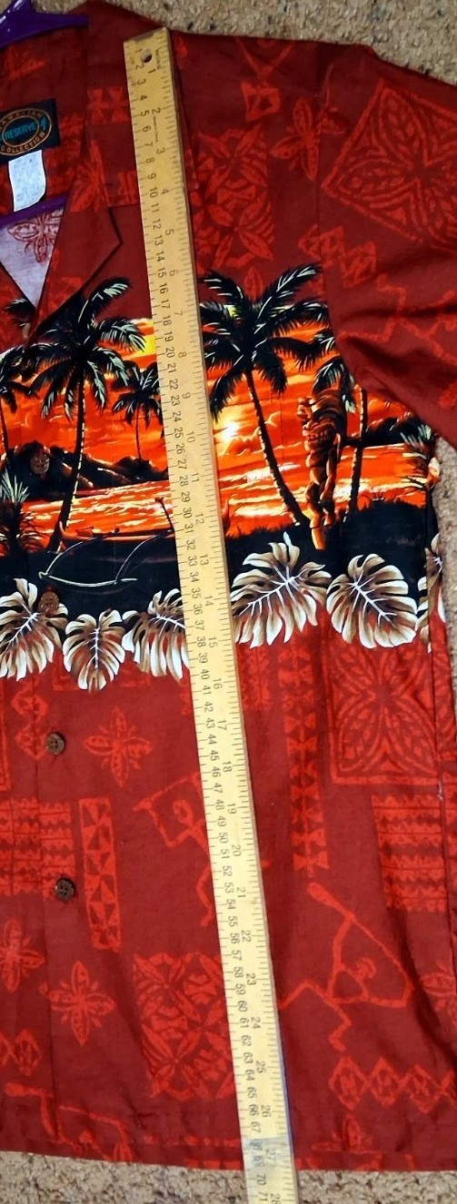 как выглядит Hawaiian Reserve Collection Button Up Shirt Luau Palms Tiki Canoe Hawaii Vintage фото
