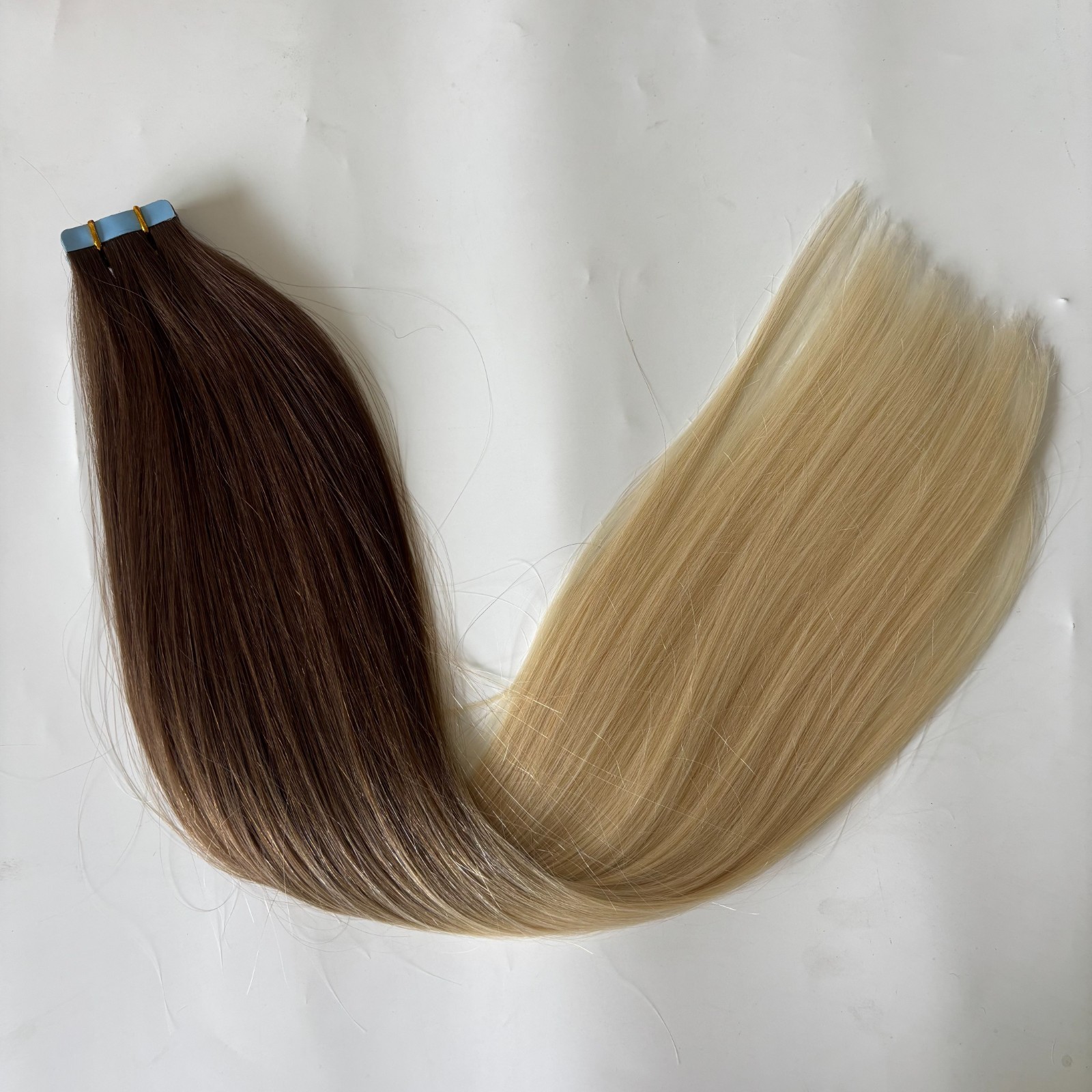 Seamless Tape In Human Hair Extensions Skin Wefts Ombre Brown To Blonde 22 60g