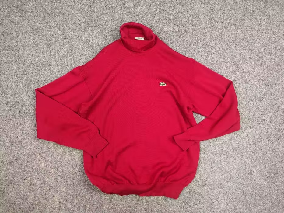 как выглядит Vintage 90s Lacoste Logo Red Wool Turtleneck Sweater фото