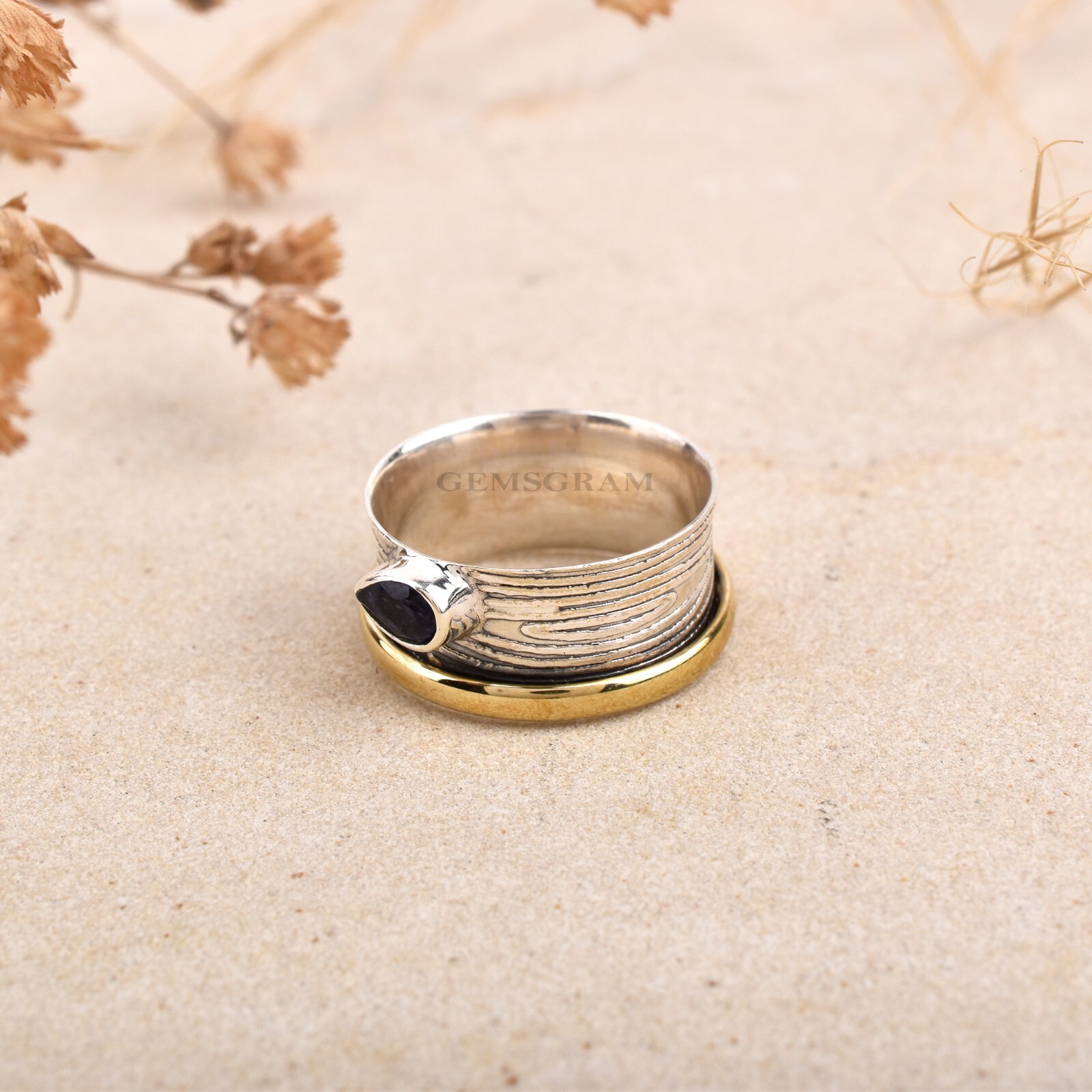 как выглядит Gemsgram 925 Sterling Silver Unisex Ring Amethyst Gemstone Spinner Jewelry фото