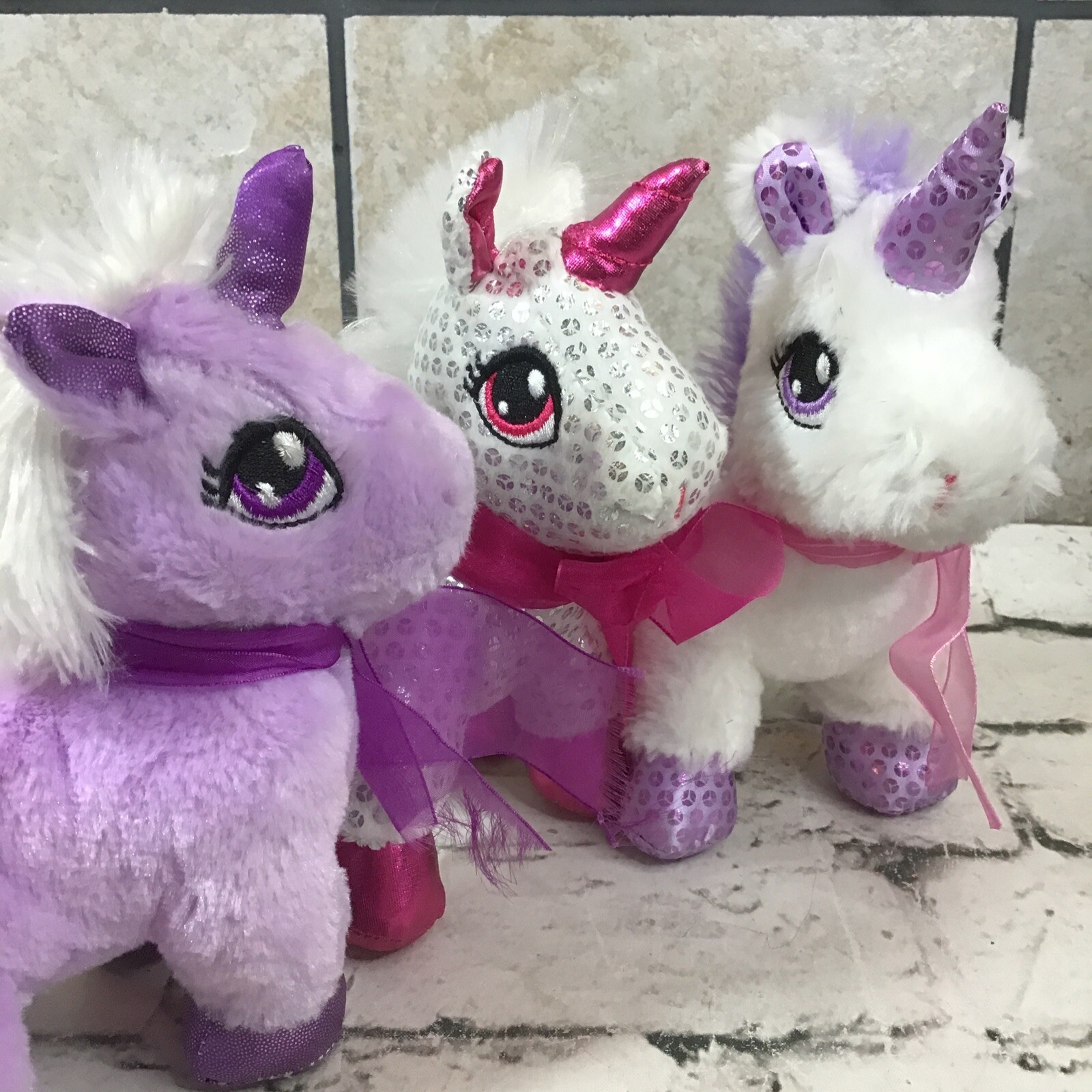 как выглядит Dan Dee Unicorn Plush Lot Of 3 Purple Pink Shimmer Stuffed Animals Sewn Eyes фото