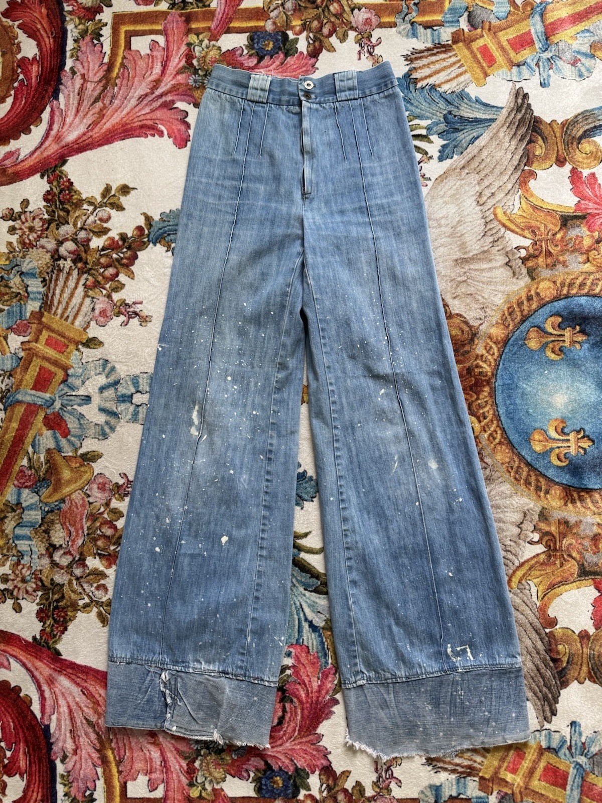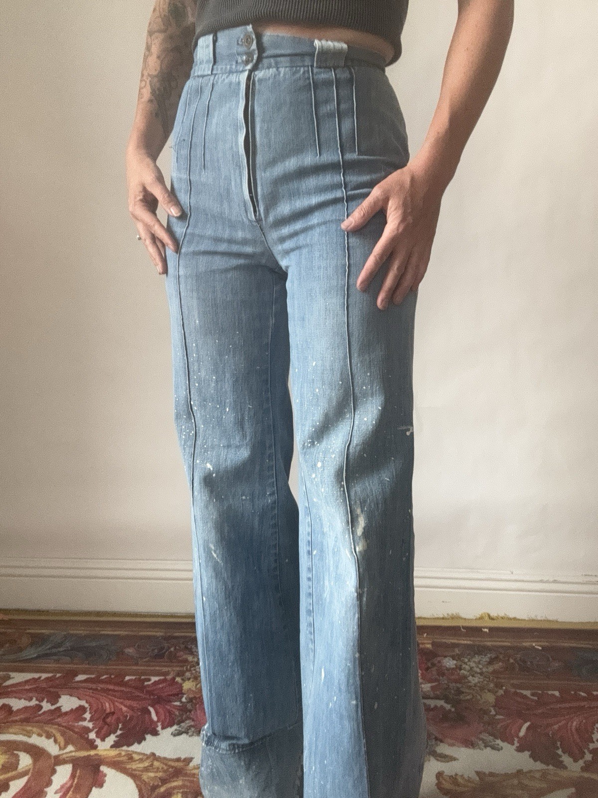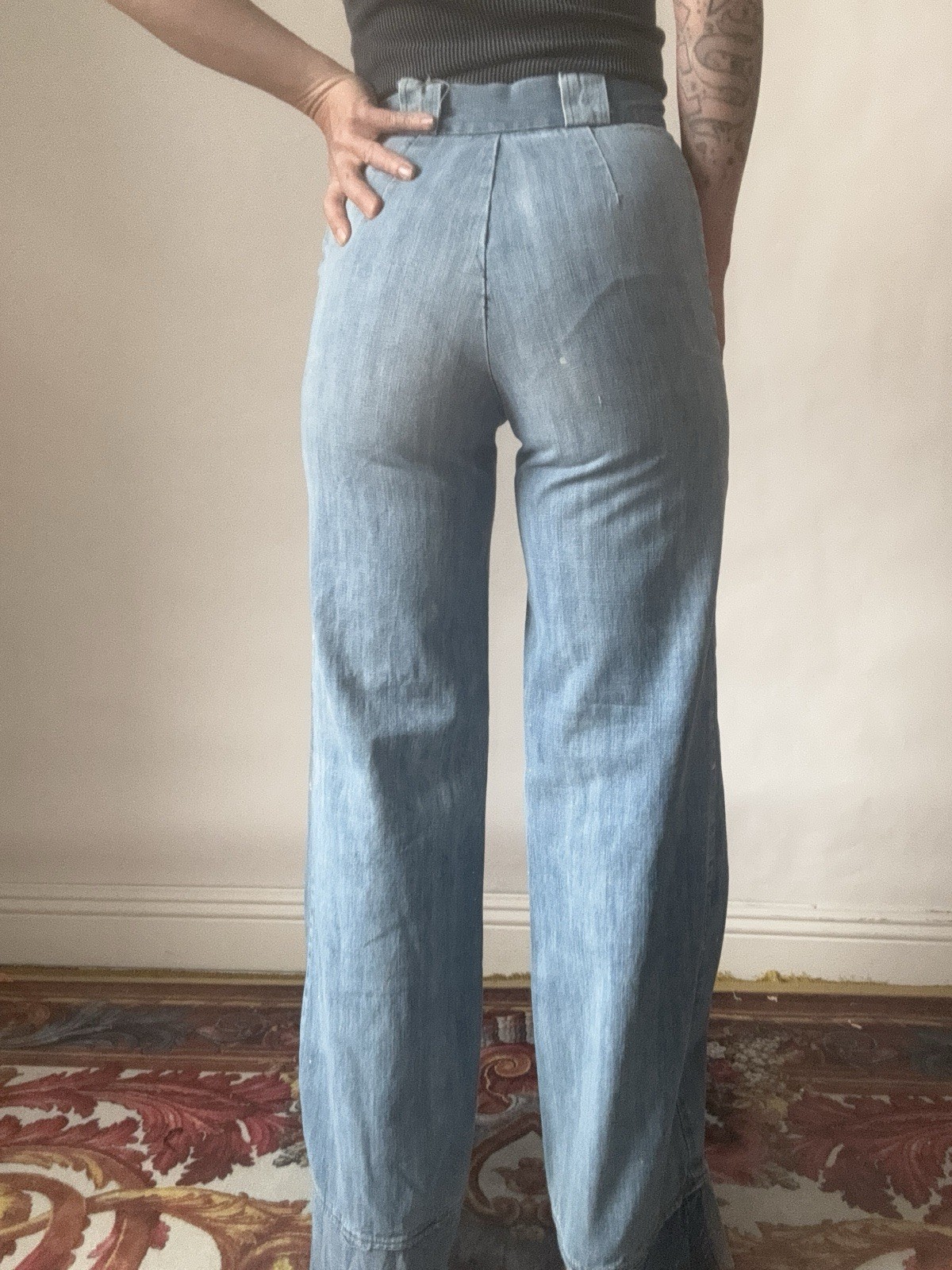 Vintage 1970s 70s High Waist Wide Leg Denim Jeans California Market S 26