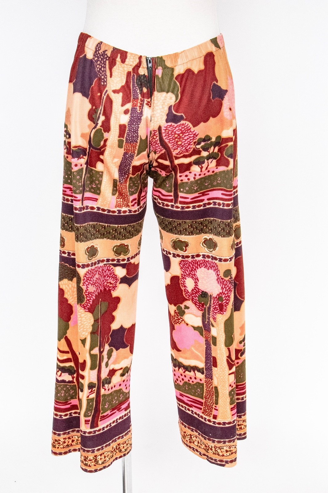 1970s Pants Nylon Print Nylon Knit Low Rise XS