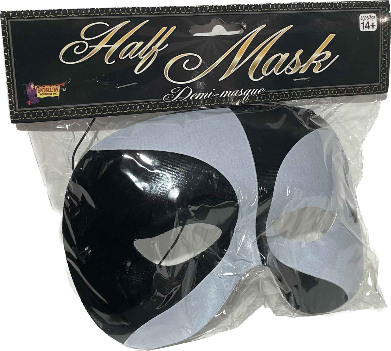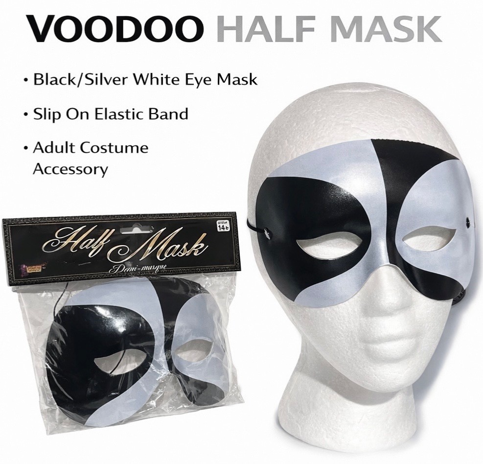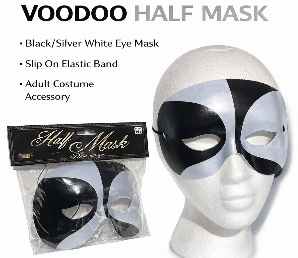 BLACK WHITE VOODOO HALF MASK Face Eye Adult Mardi Gras Mime Clown Jester Domino