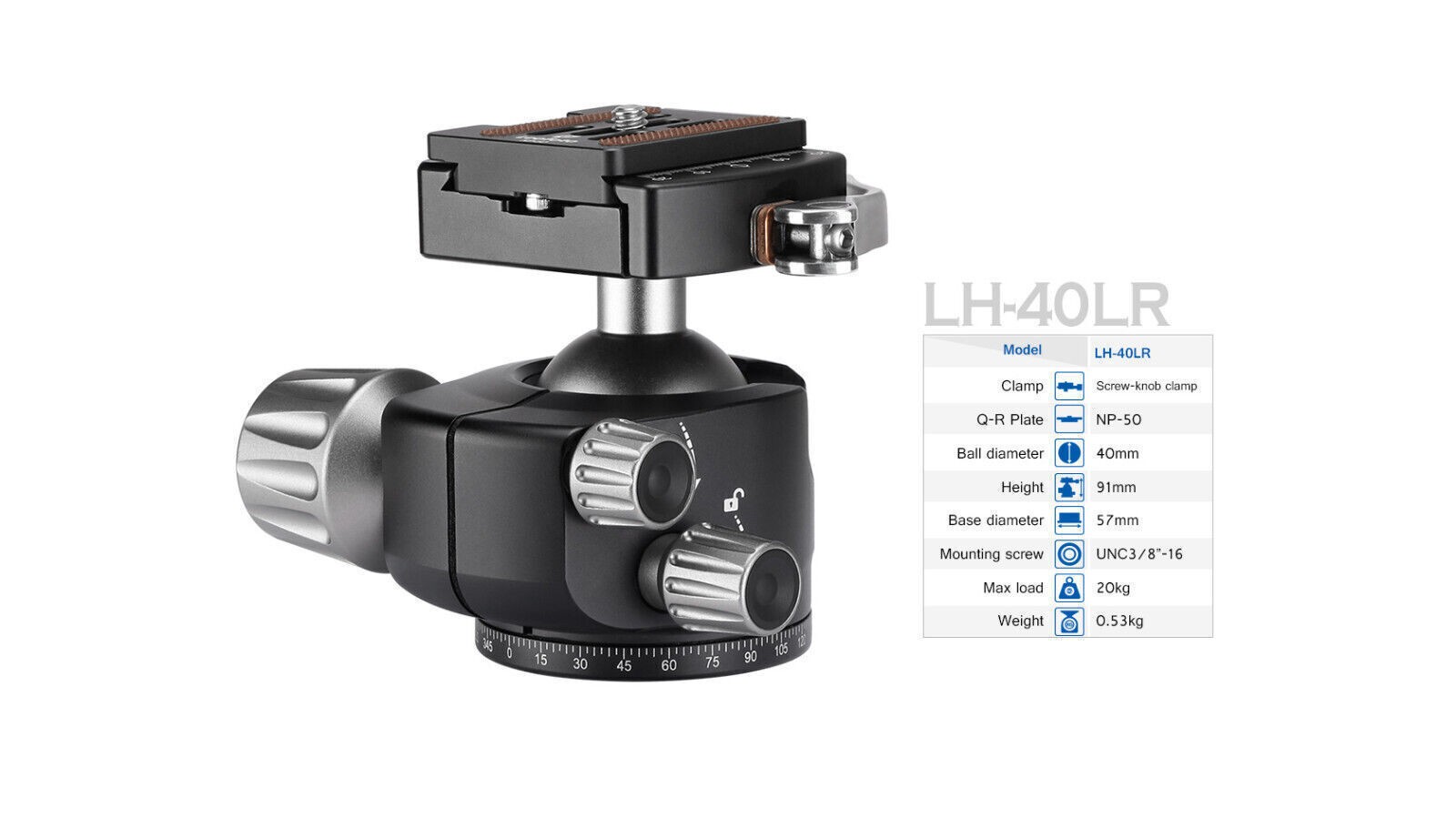 как выглядит Leofoto LH-40LR Ball Head with LR-50 Lever Release Clamp /Arca фото