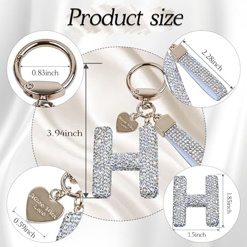 Bling Alphabet Keychain for Women Girls - Alloy Initial Letter A-Z White-h
