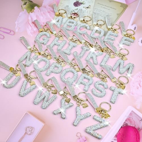 как выглядит Bling Alphabet Keychain for Women Girls - Alloy Initial Letter A-Z White-h фото