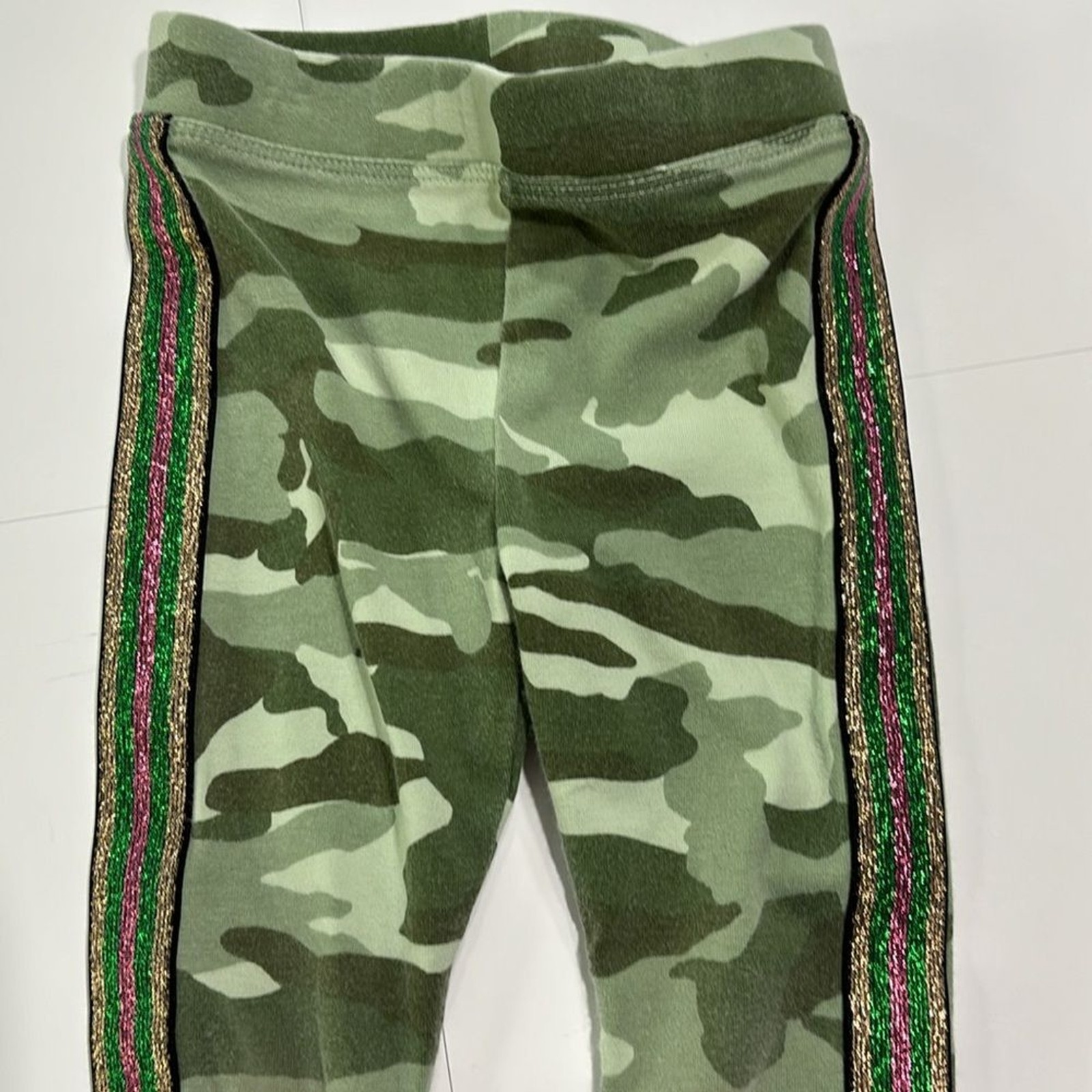 CrewCuts J. Crew Girls Green Stretchy Camouflage Leggings Glitter Stripes
