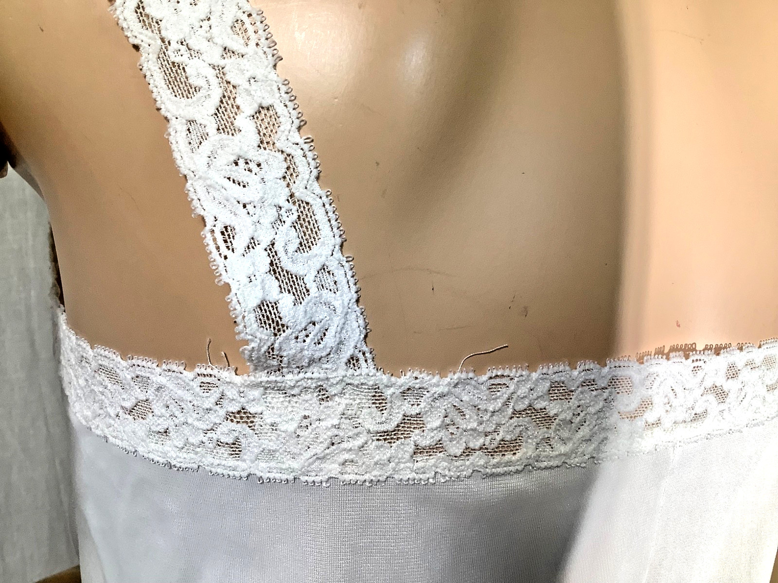 как выглядит Vintage cami Top white Olga lace Strap nylon Silky knit M camisole 70s seamed фото