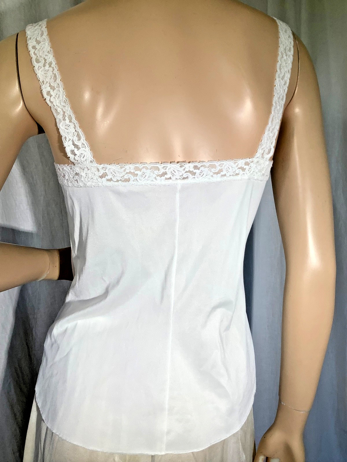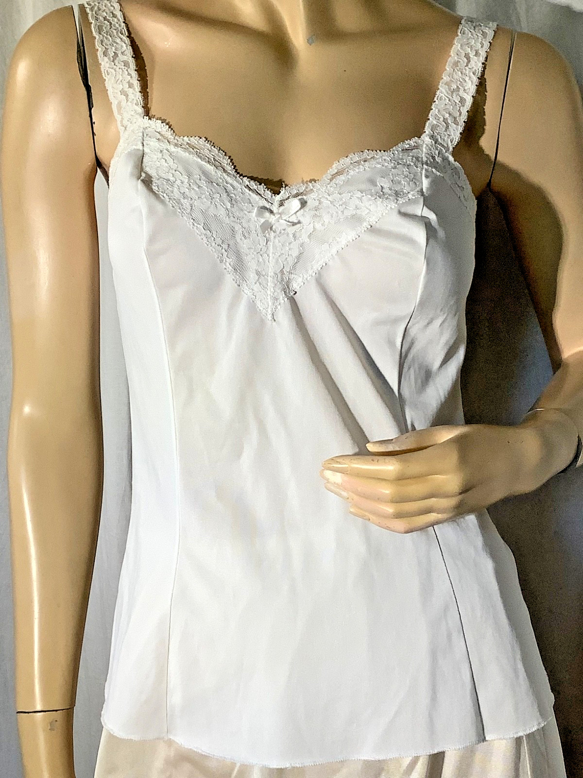 Vintage cami Top white Olga lace Strap nylon Silky knit M camisole 70s seamed