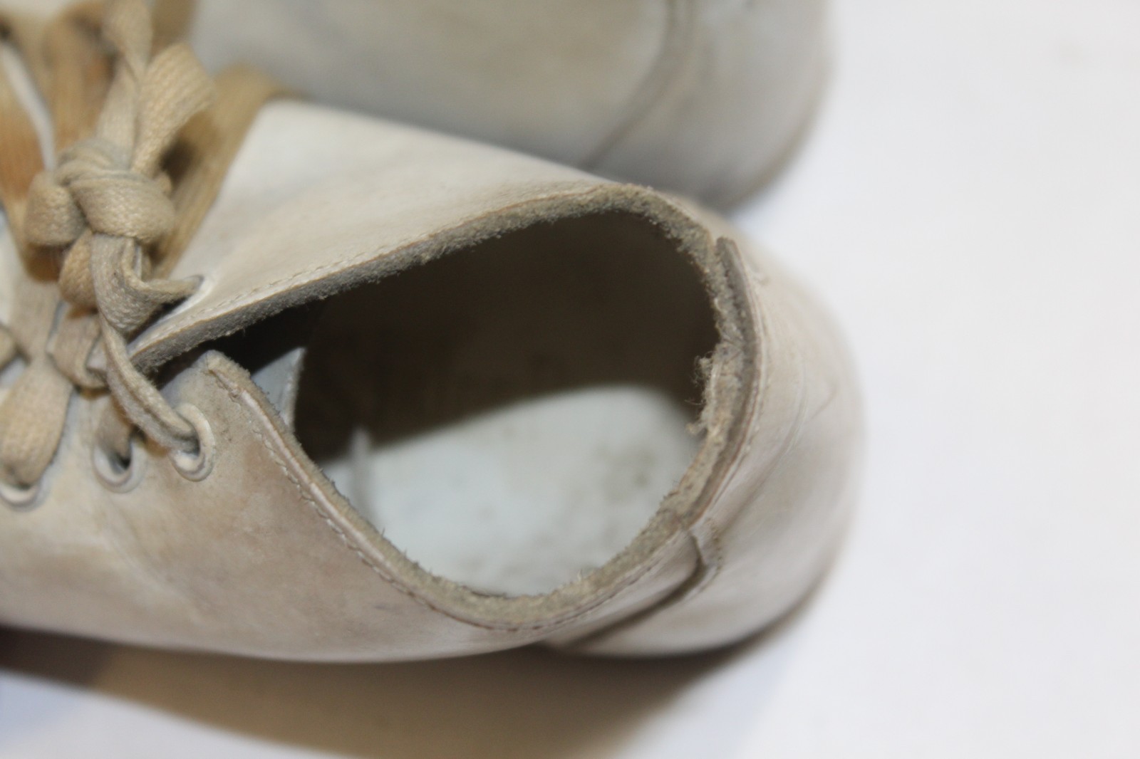 как выглядит vtg Hard Bottom Baby Shoes Stride Rite White Leather Walking baby battery Op lot фото