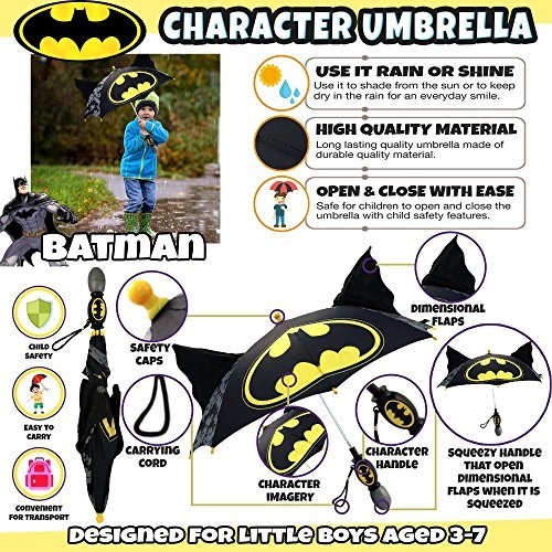 DC Comics Boys' Squeeze And Flap' Fun Rainwear Umbrella RARE rain
