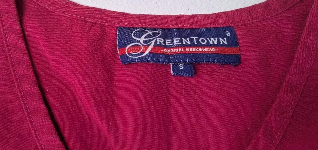 Green Town Uniform Scrub Top Women's S burgundy V Neck Short Sleeve