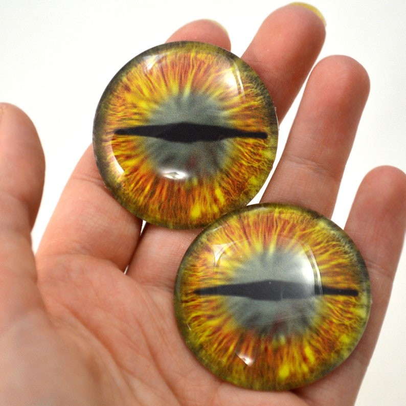 как выглядит Pair Gold and Teal Green Dragon Glass Eyes Jewelry Dolls Flatback Cabochons фото