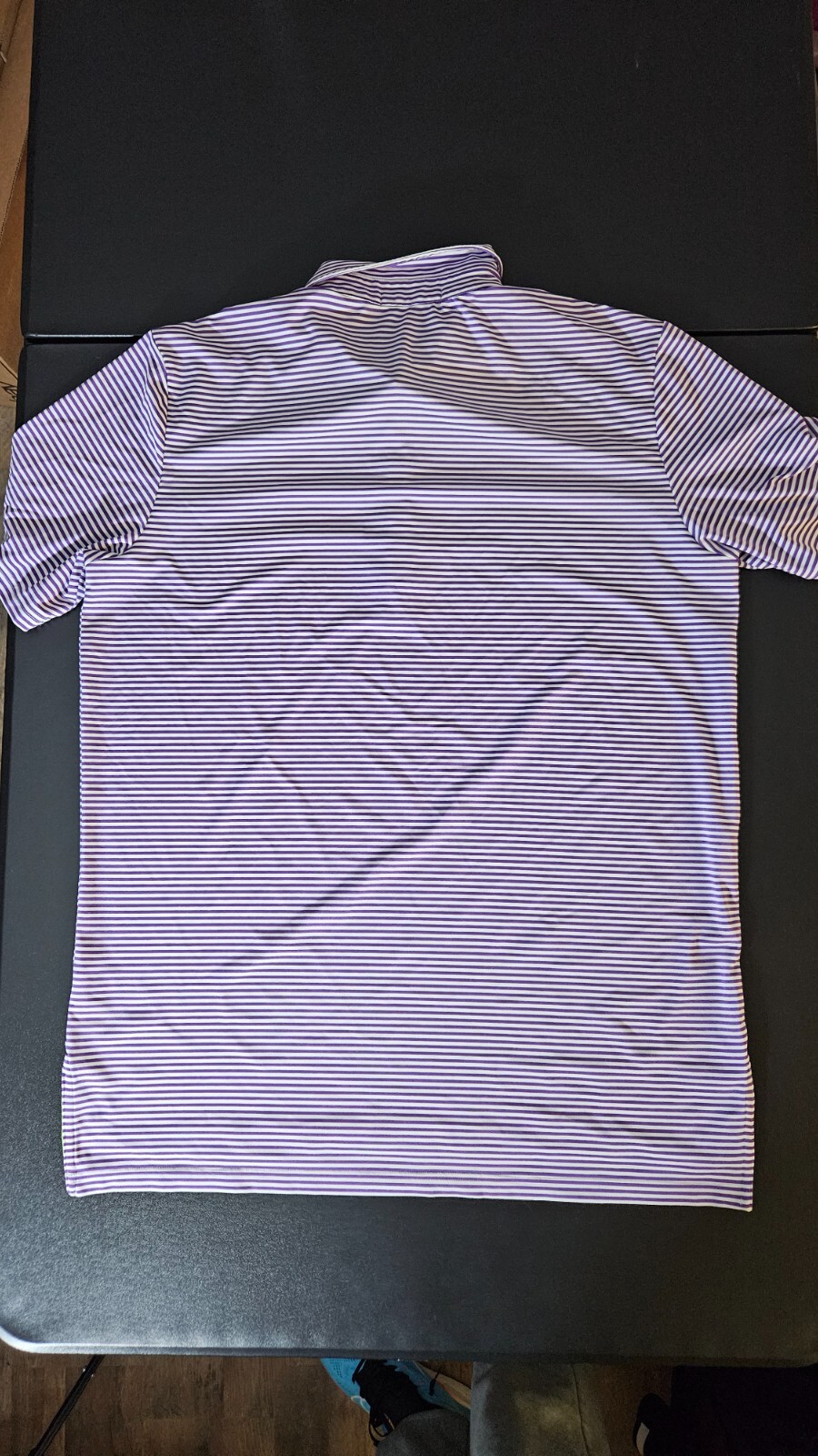 как выглядит Polo Ralph Lauren RLX Mens L Purple White Horizontal Stripes Polo Golf Shirt фото