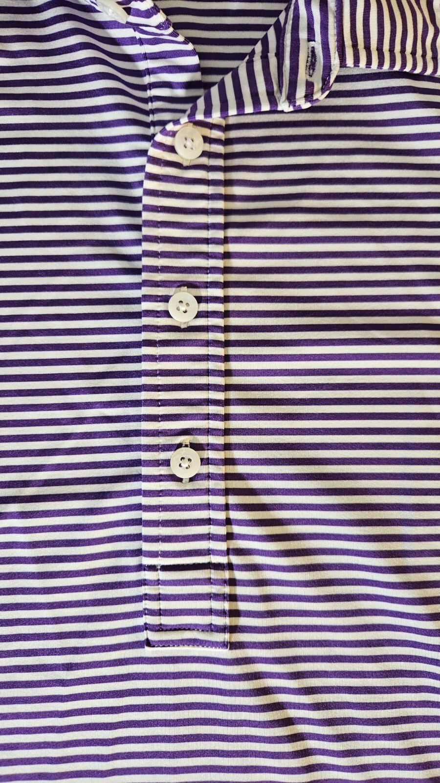 Polo Ralph Lauren RLX Mens L Purple White Horizontal Stripes Polo Golf Shirt