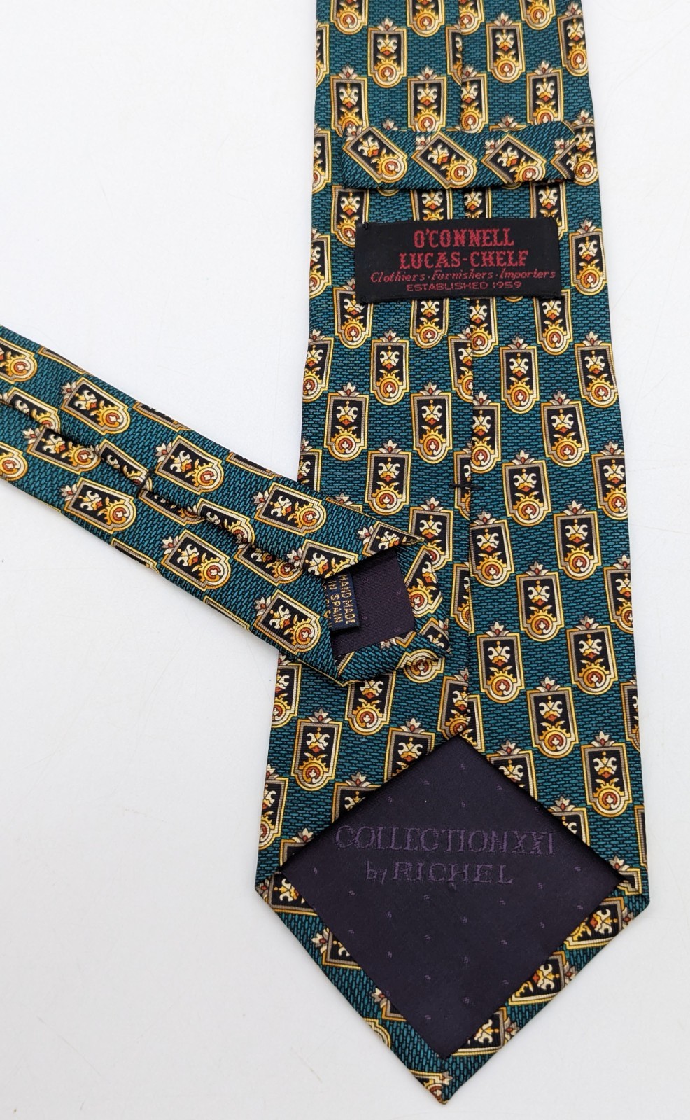 Vtg Richel for O'Connell's Green Baroque Panels 100 Silk Tie