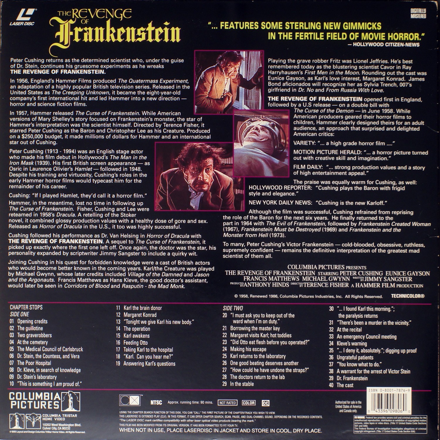 The Revenge Of Frankenstein - Laser Disc LD NTSC NHLMO 044 US