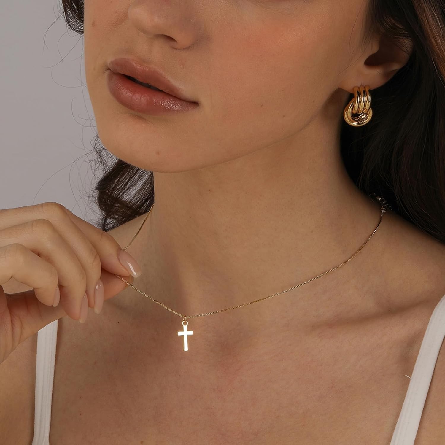 Cross Necklace for Women Trendy 14K Dainty Gold Silver Plated Pendant...