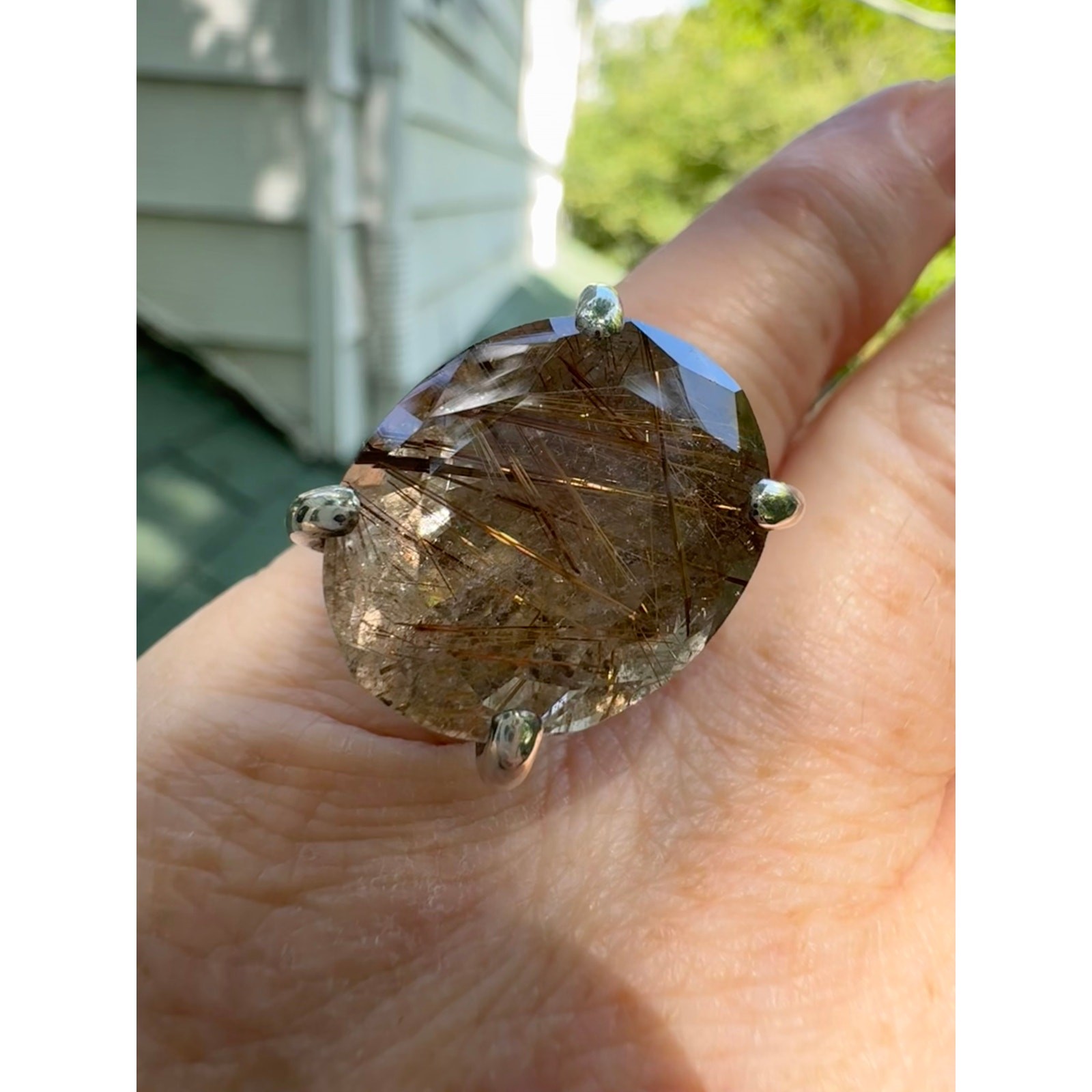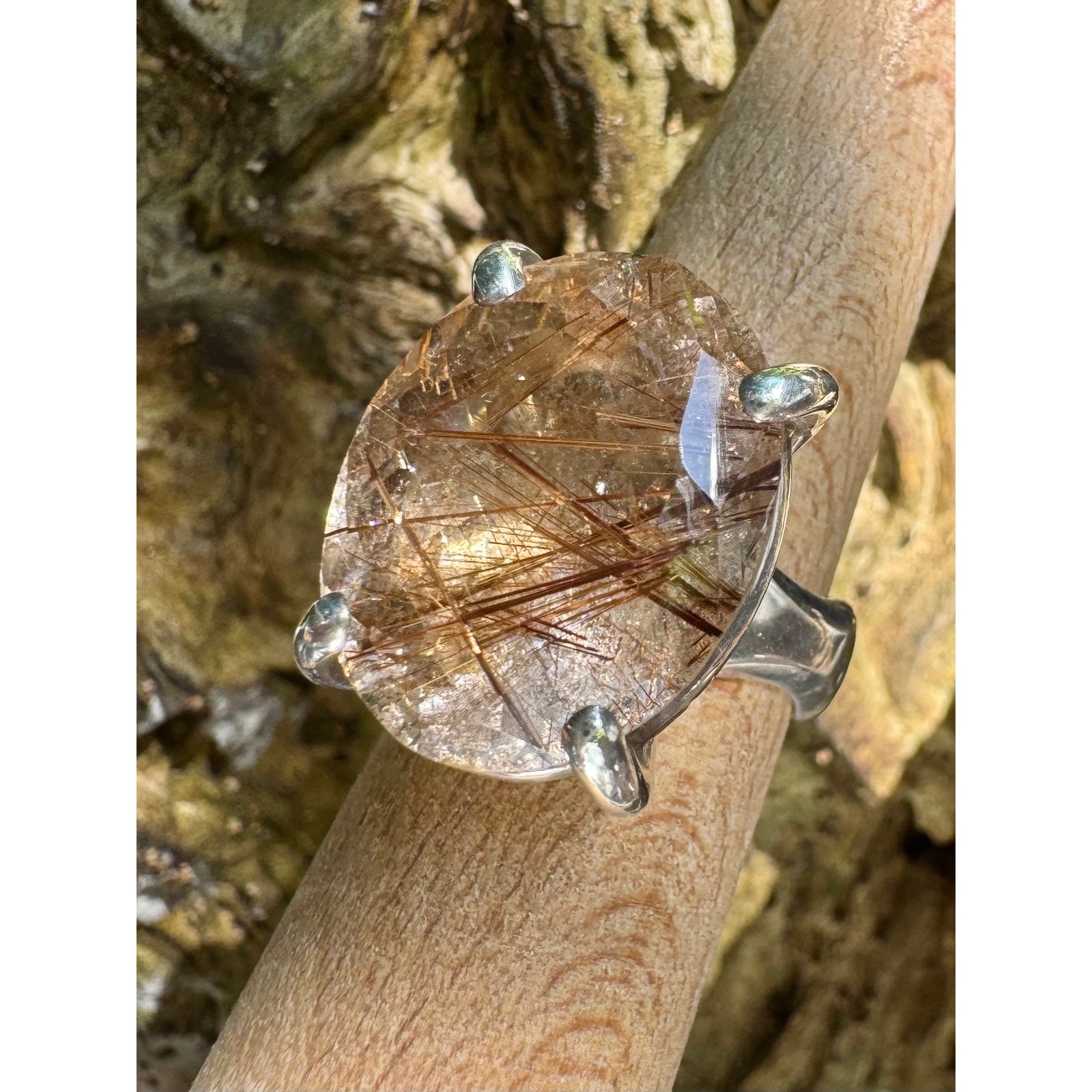 Copper Rutile Quartz Crystal Ring Sterling 925 Silver Statement Cocktail Sz 6.5