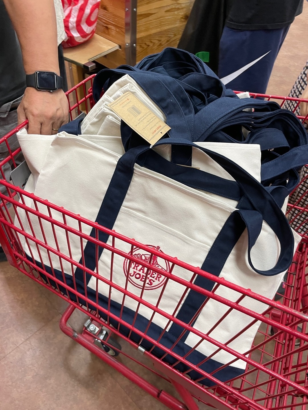как выглядит Trader Joe s Bag Canvas Reusable Heavy Cotton Basic Style Shopping Navy Large фото