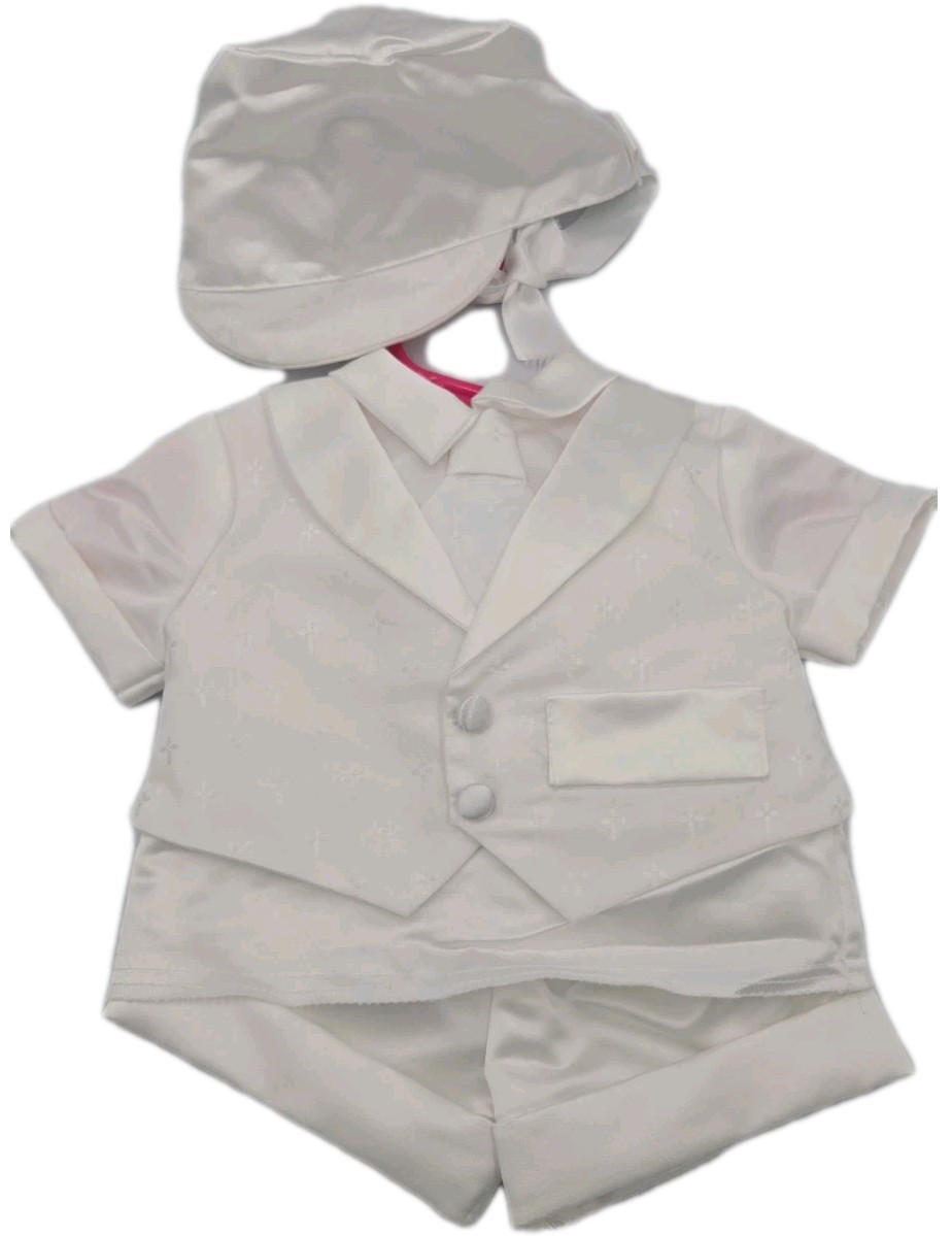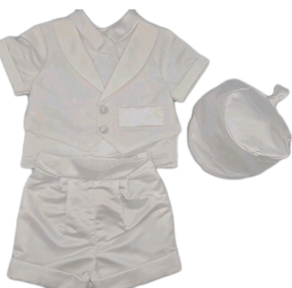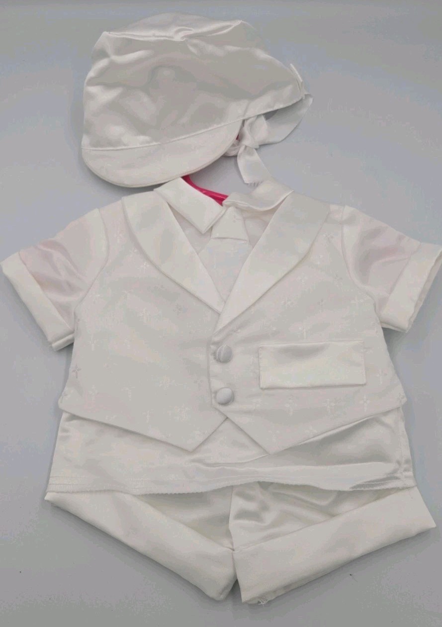 New Baby Toddler Boy Christening Baptism 3pcs Formal White Satin Suit Set