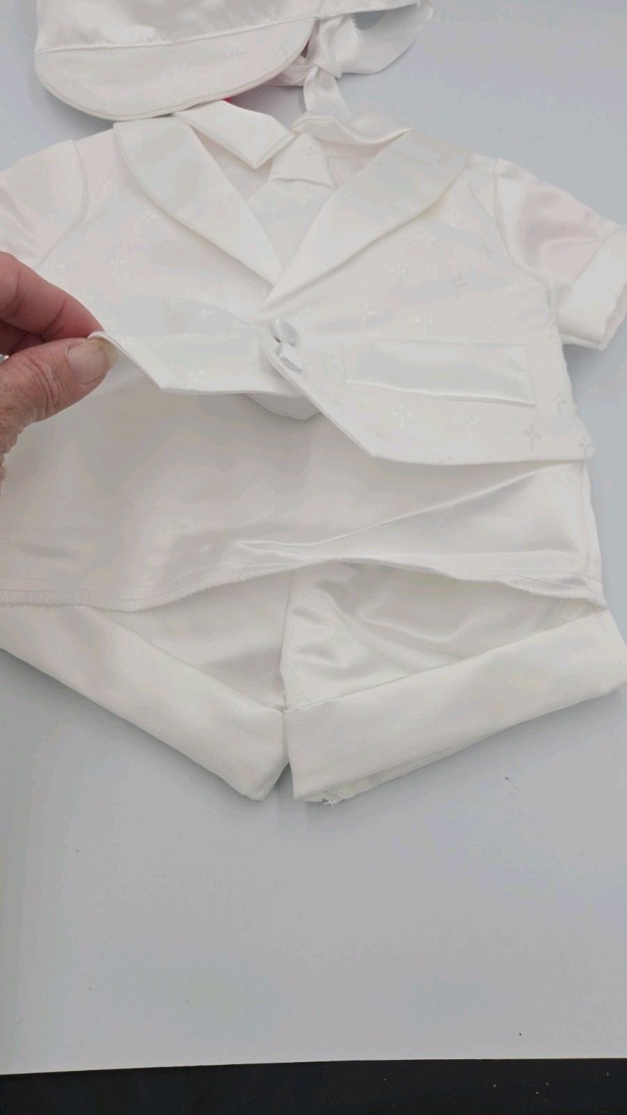 как выглядит New Baby Toddler Boy Christening Baptism 3pcs Formal White Satin Suit Set фото