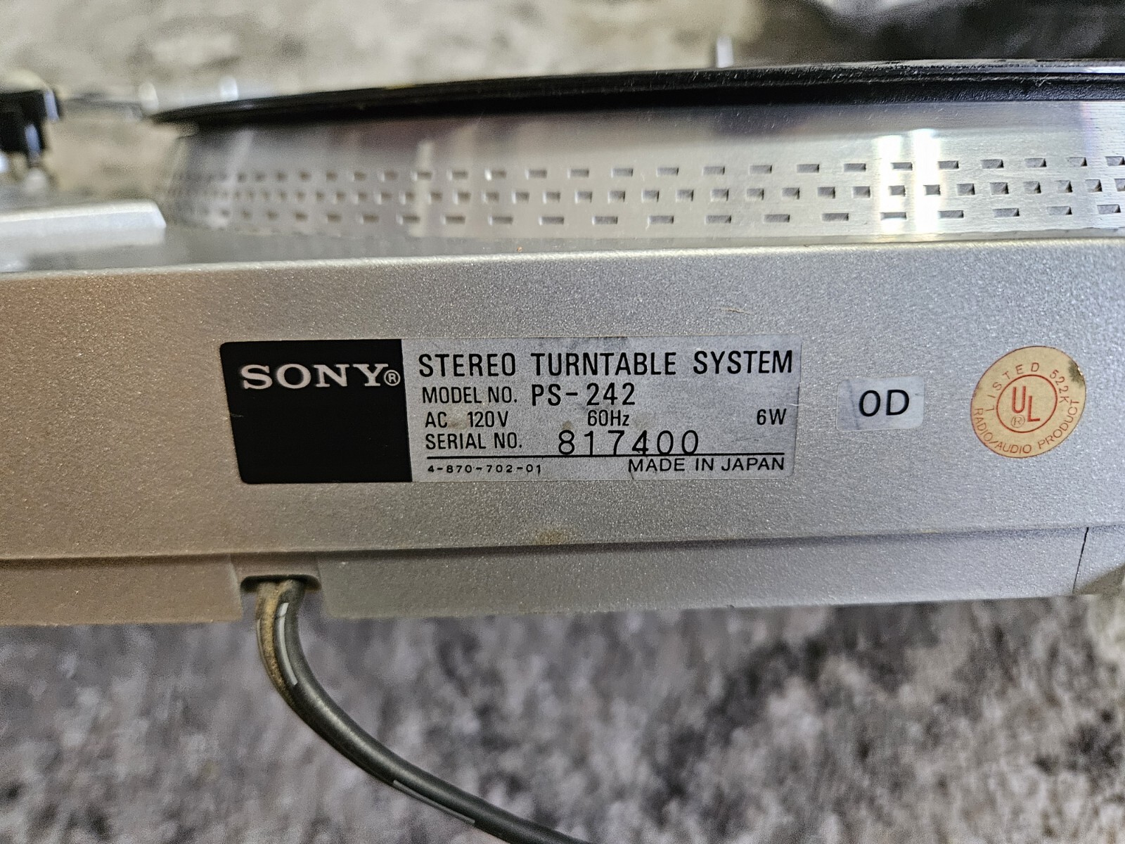 Working Sony PS-242 Direct Drive Turntable Record Player - VL 37G Headshell