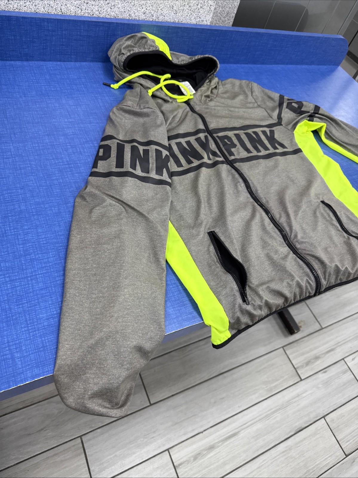 Pink Victoria Secret Hoodie Jacket Women's Windbreaker Neon/Black Sz. M-L M G