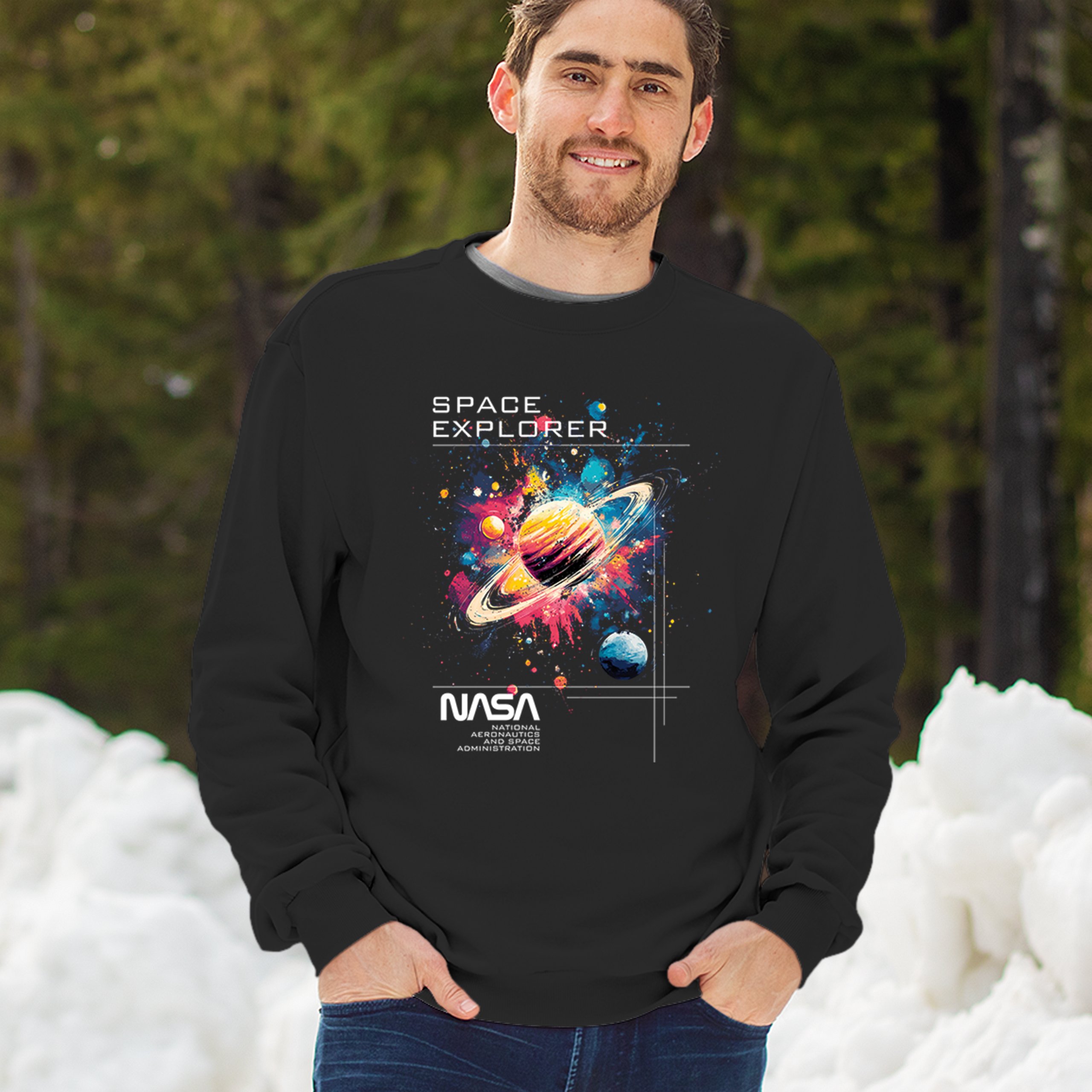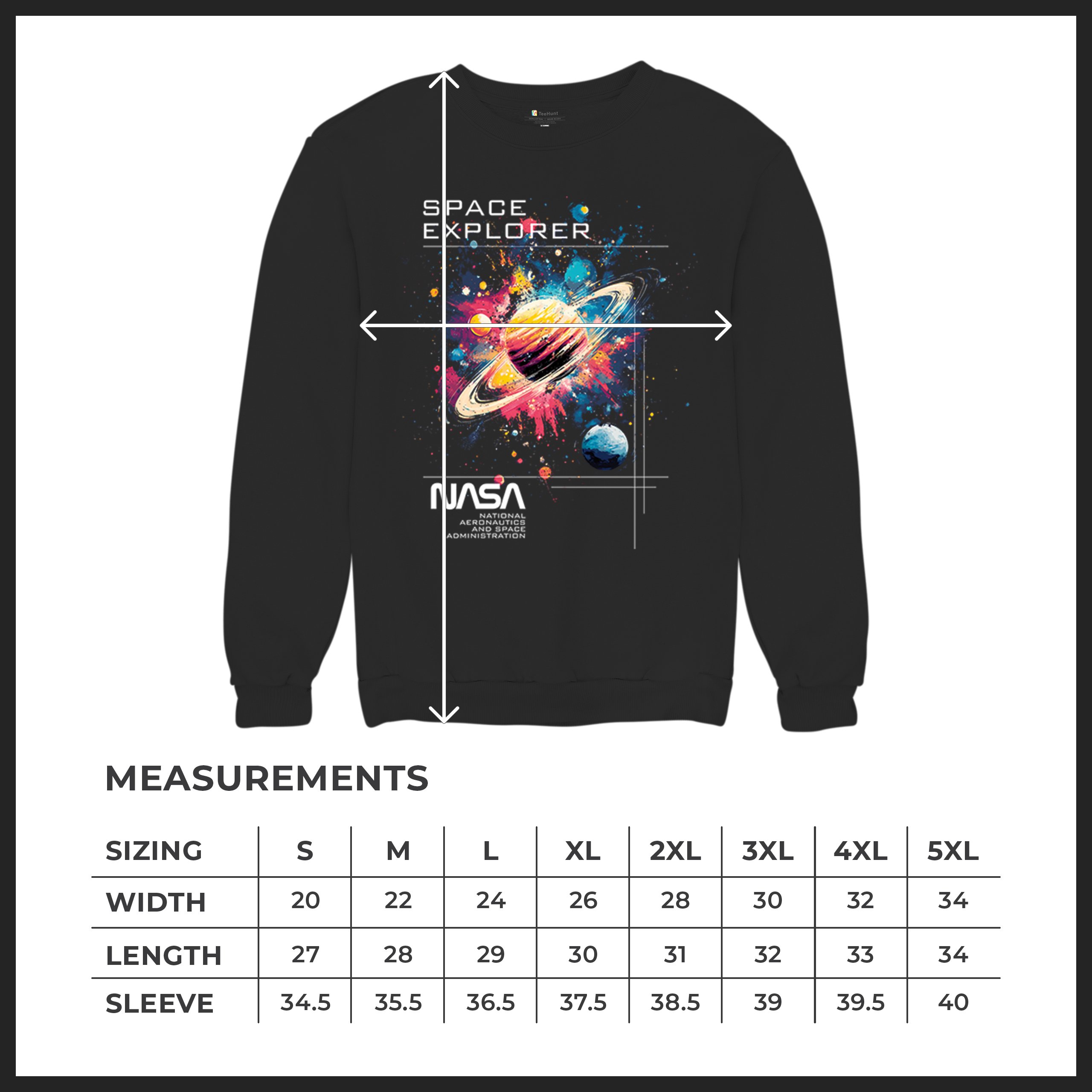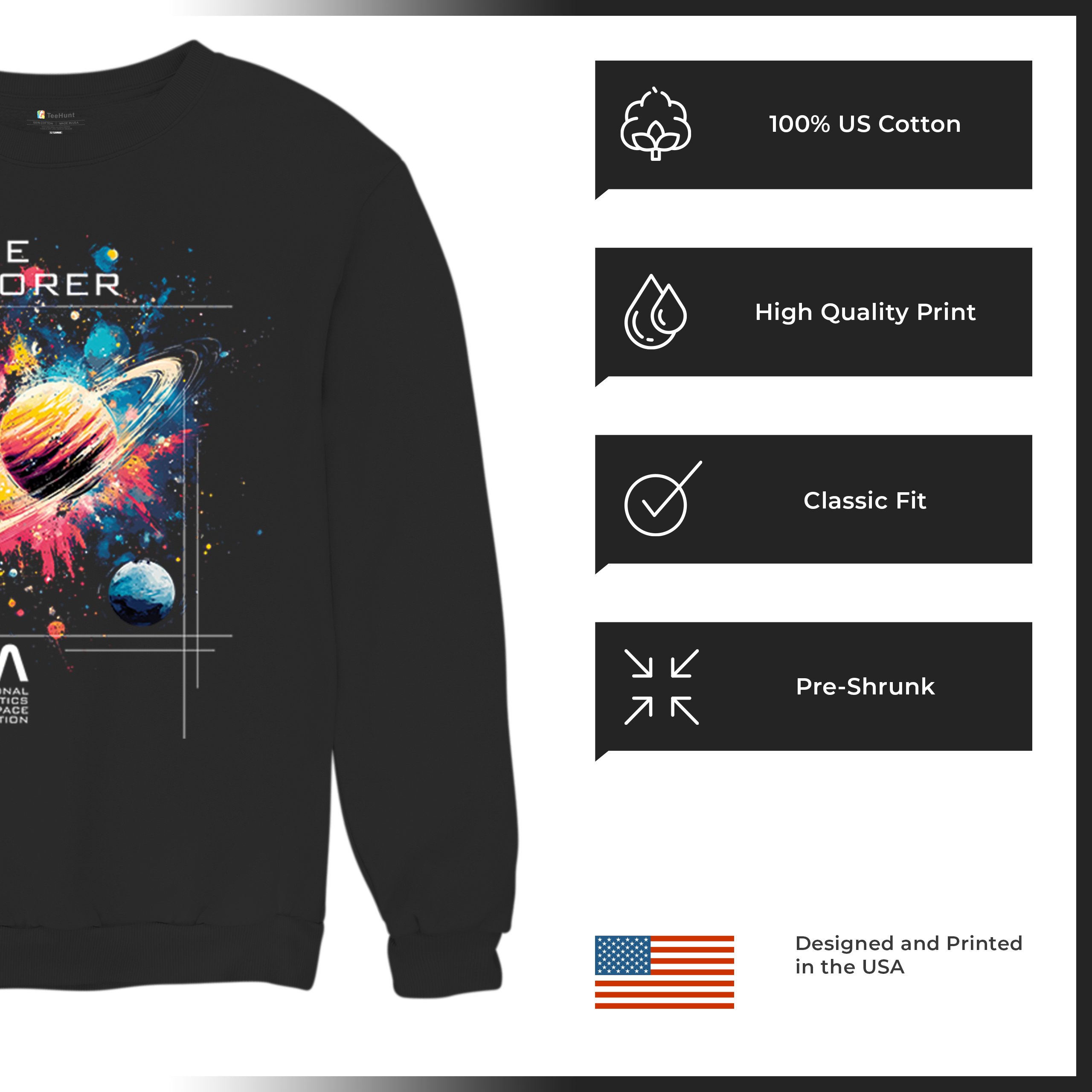 NASA Space Explorer Crewneck Sweatshirt Universe Astronaut Planet Saturn