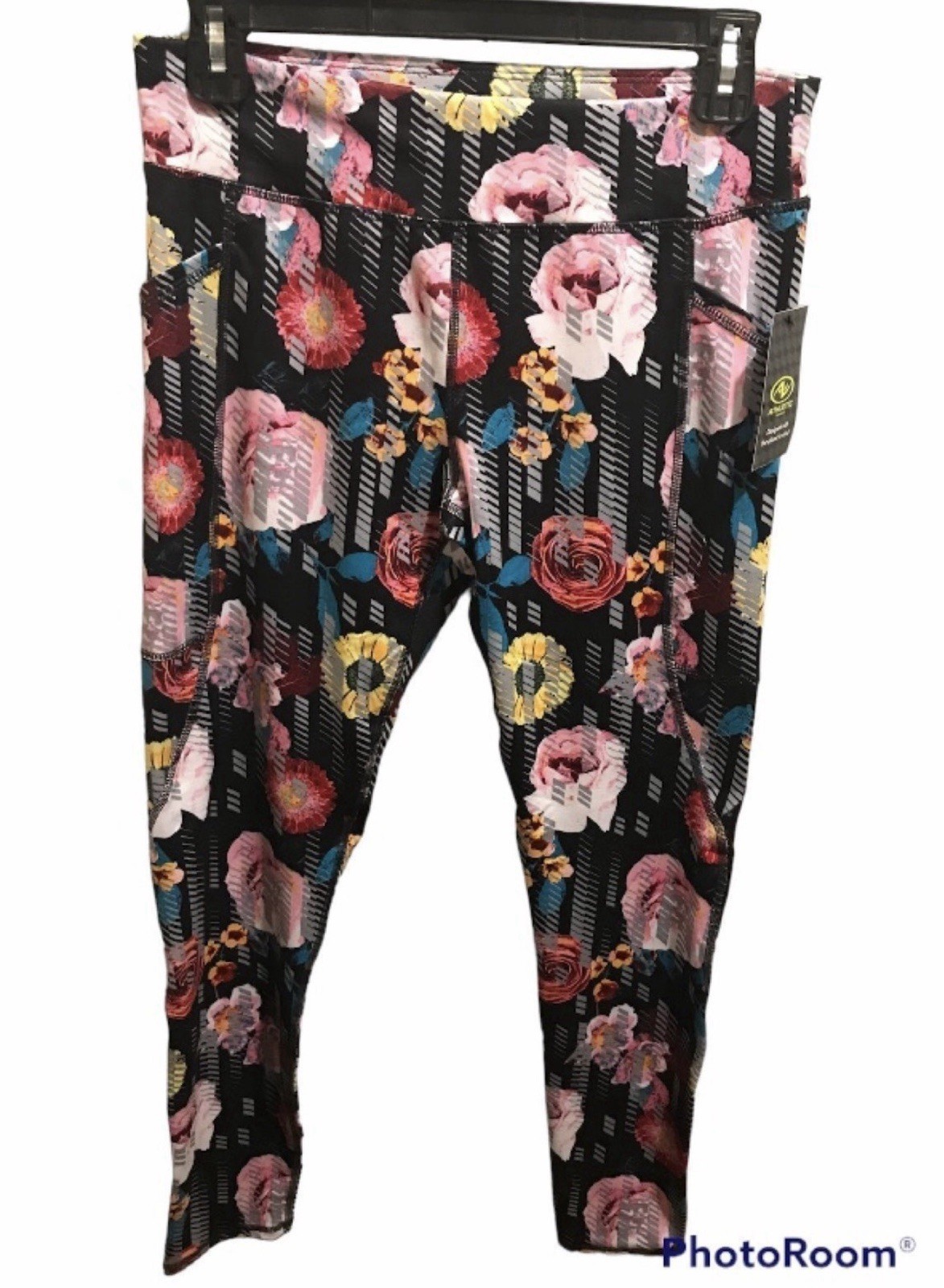 Athletic Works Girls Or Women Black Floral Leggings W/Pockets Size XXL 18