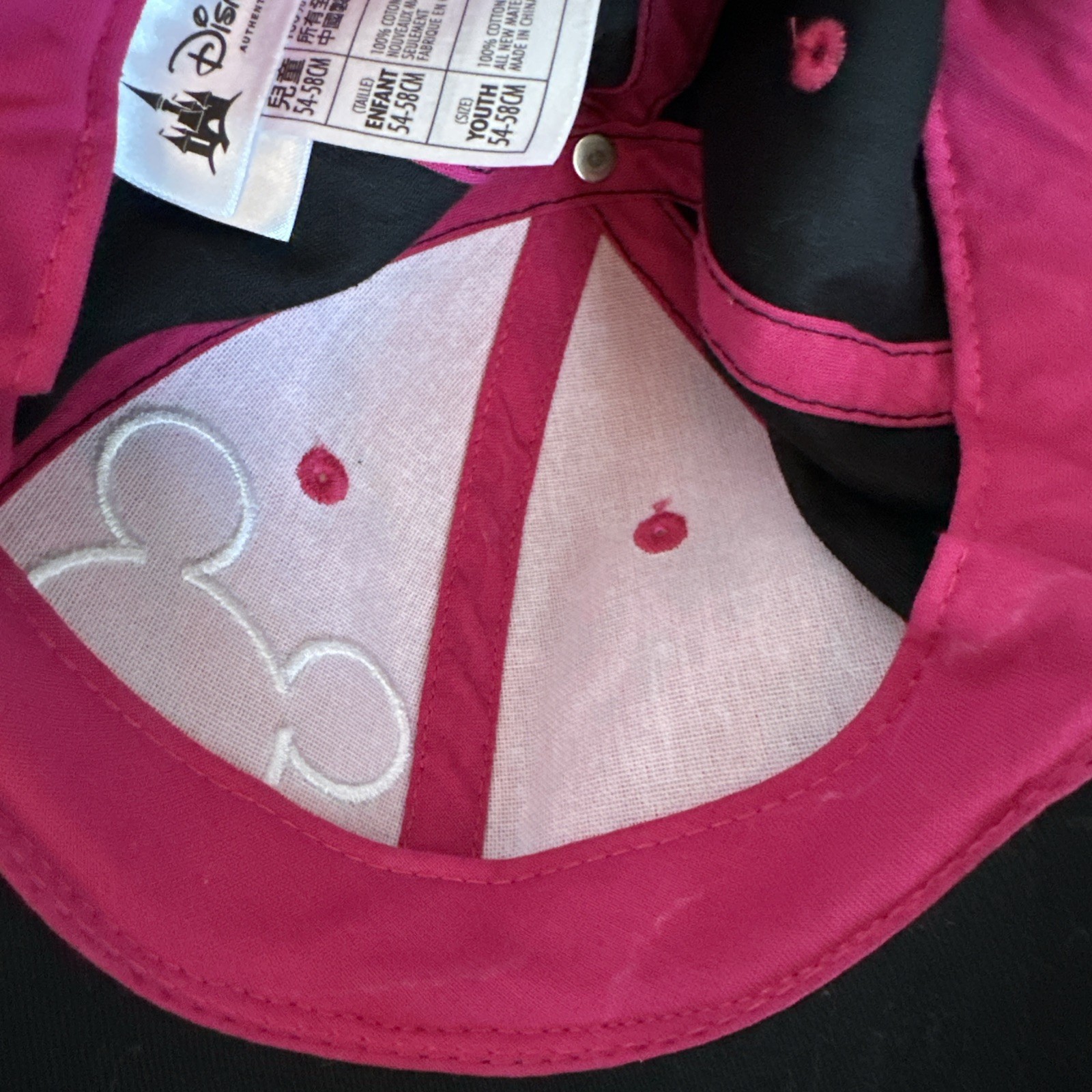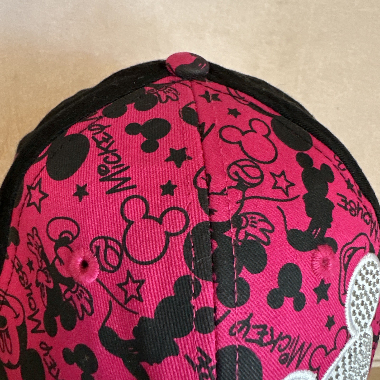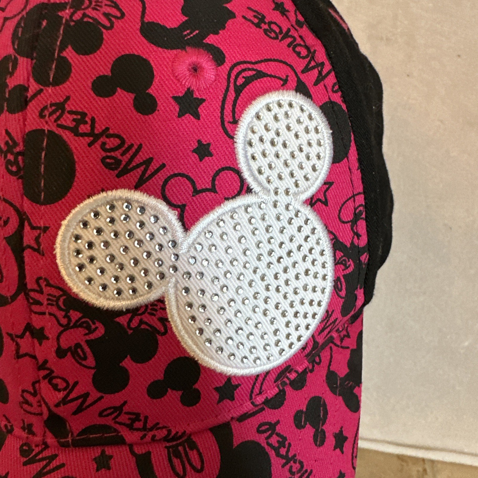 • Disney Parks Mickey Mouse Hat Cap Youth Adjustable Pink Black Rhinestones Bling
