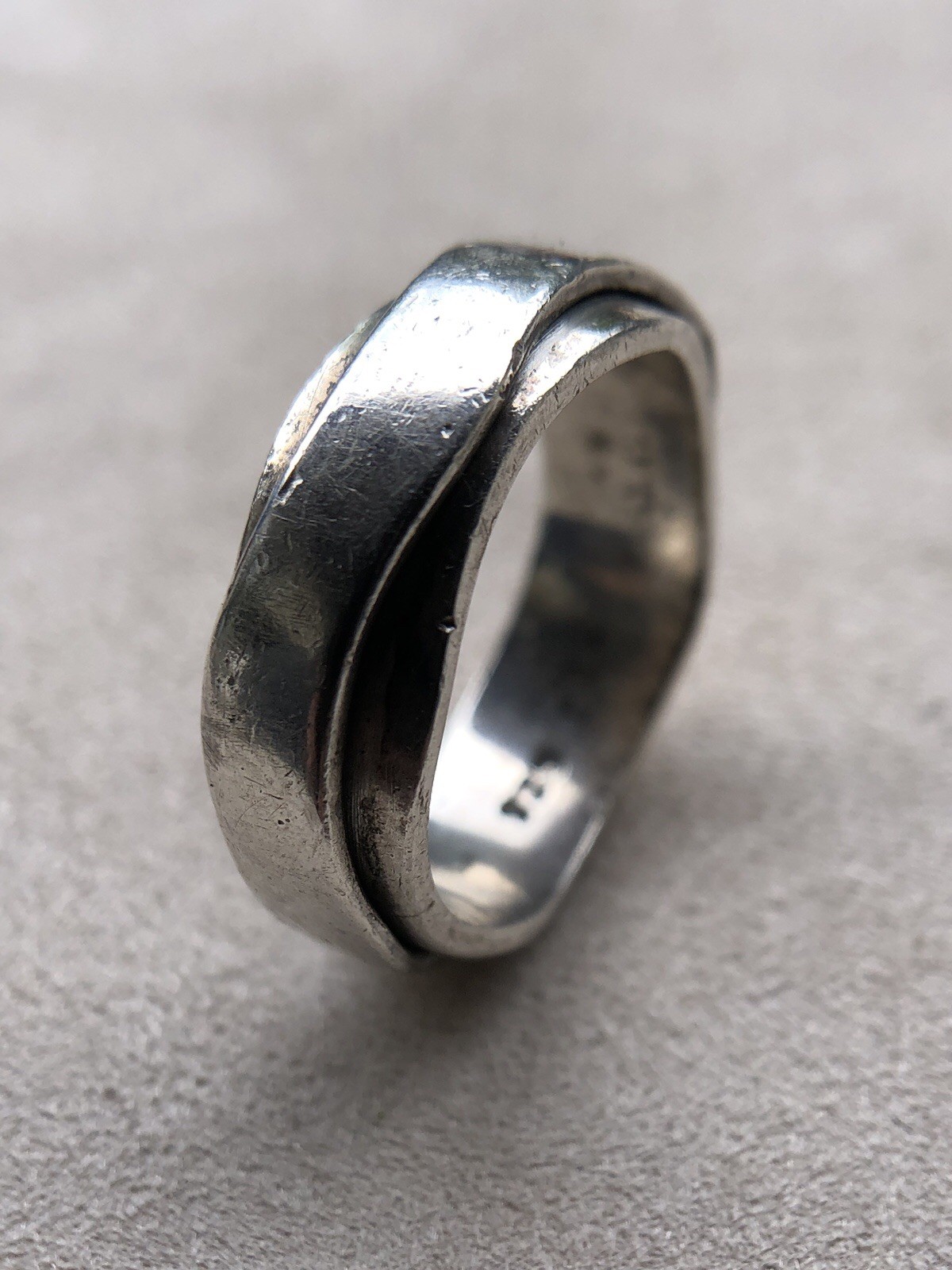 как выглядит Sterling Silver Ring Curved Design Size 9 1/4 Spinner 925 Not Very Common фото