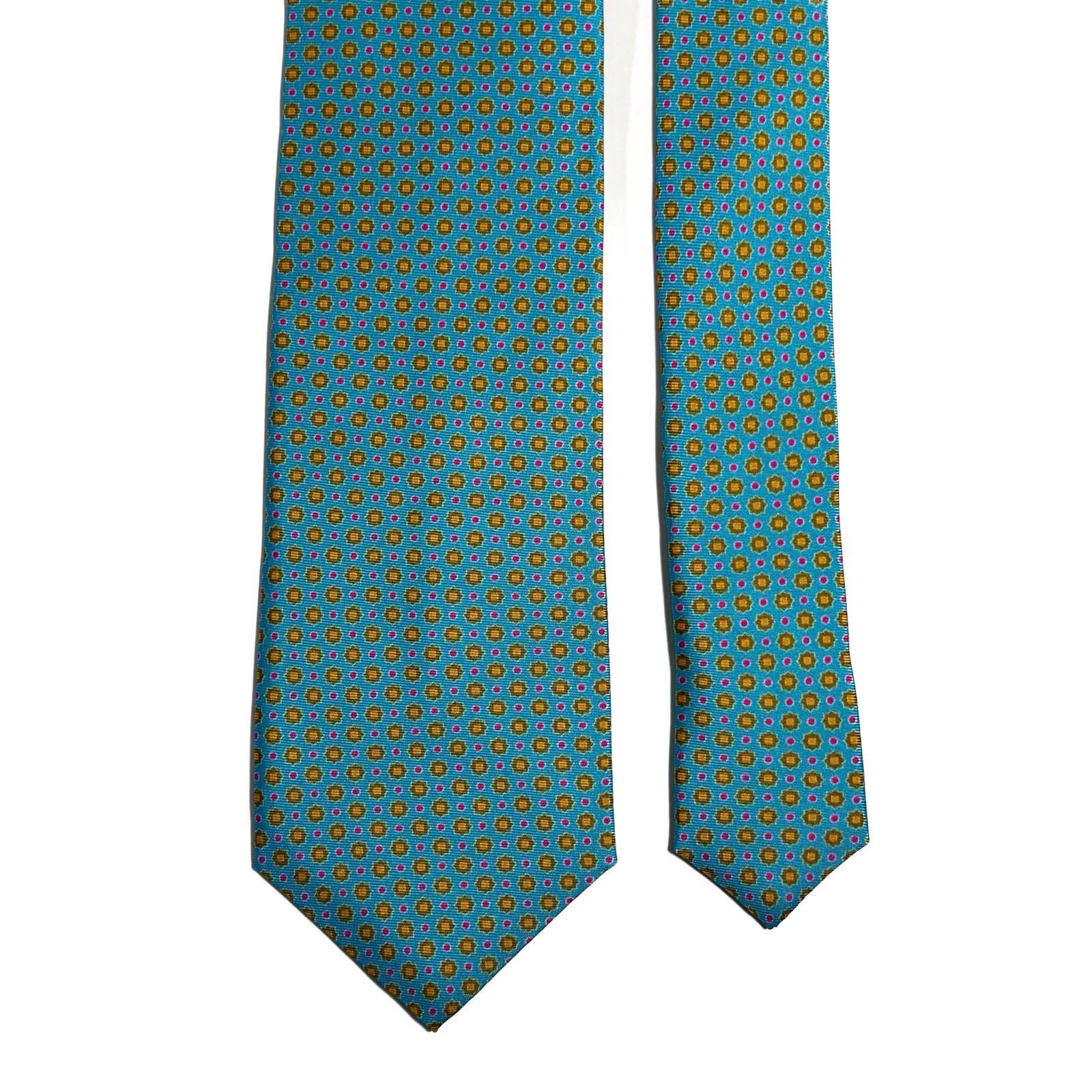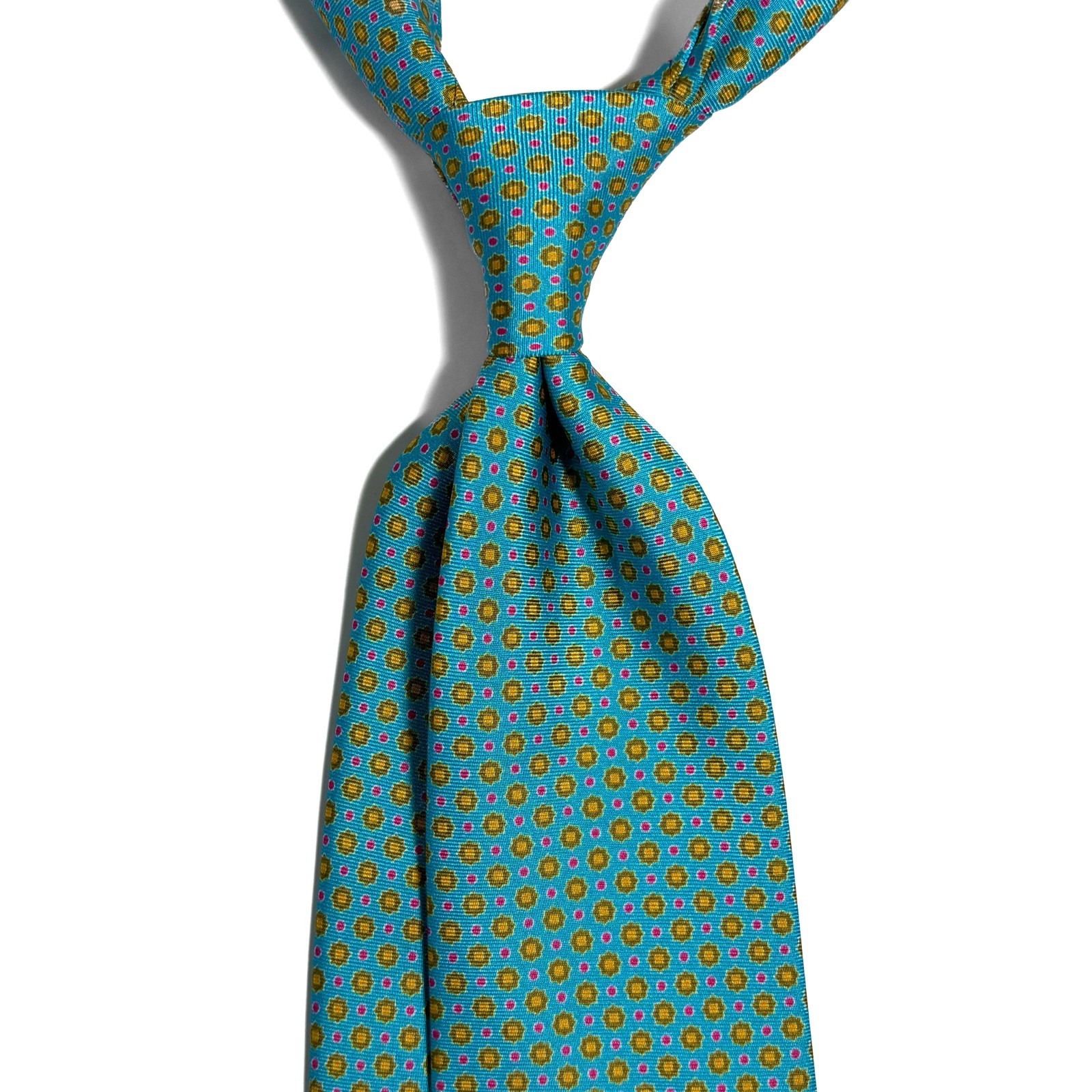 Light Aqua Blue Floral Silk Tie Handmade in England