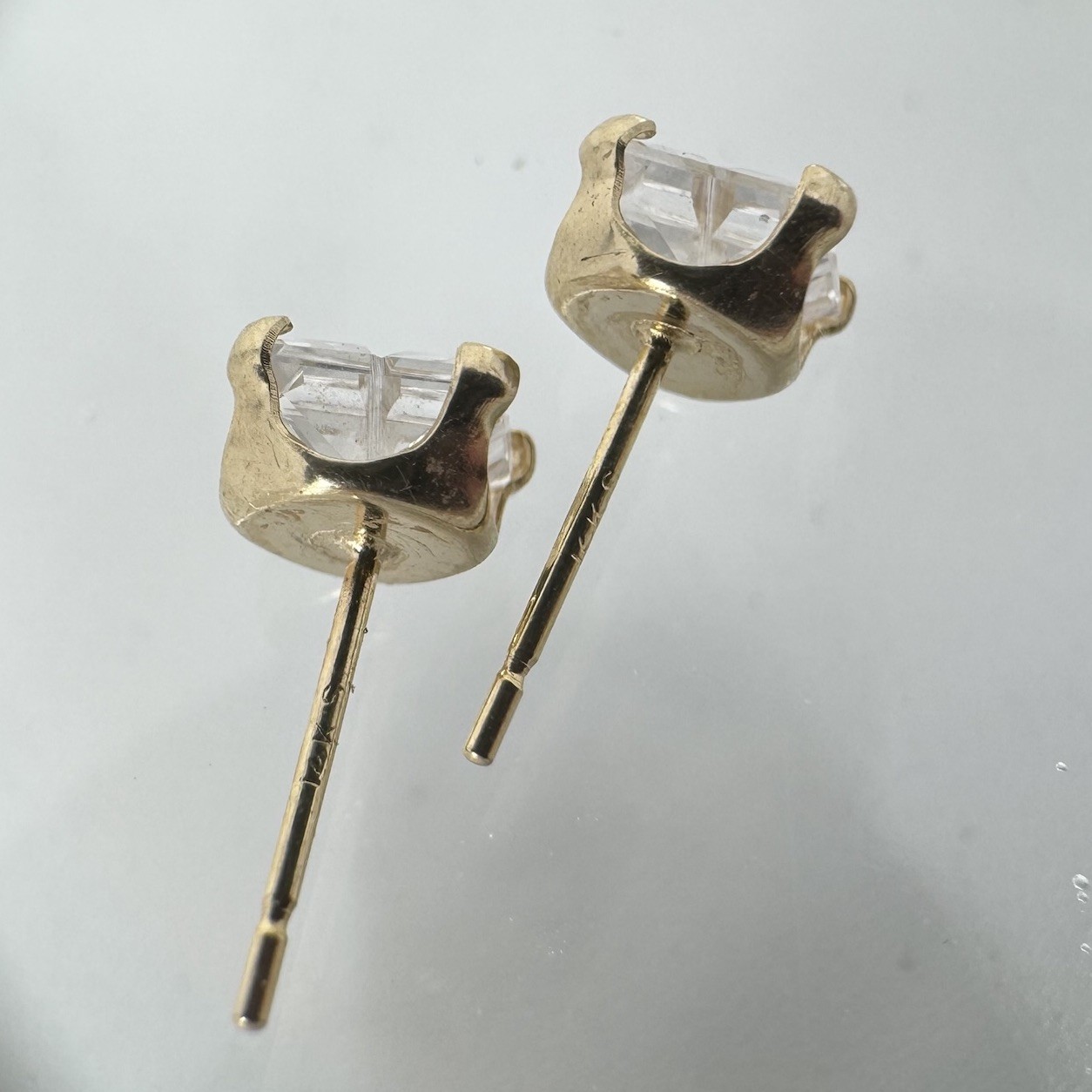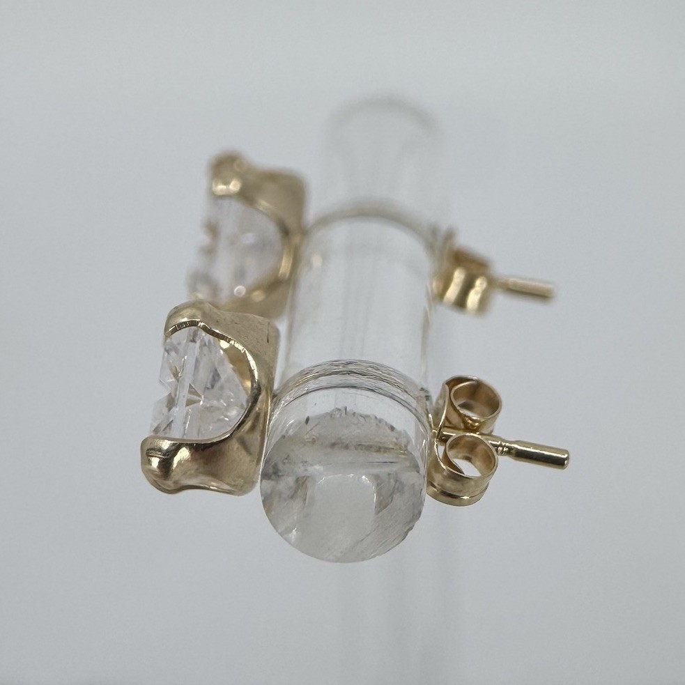 14k YELLOW GOLD CZ STUD EARRINGs SQUARE CUT WHITE CUBIC ZIRCONIA
