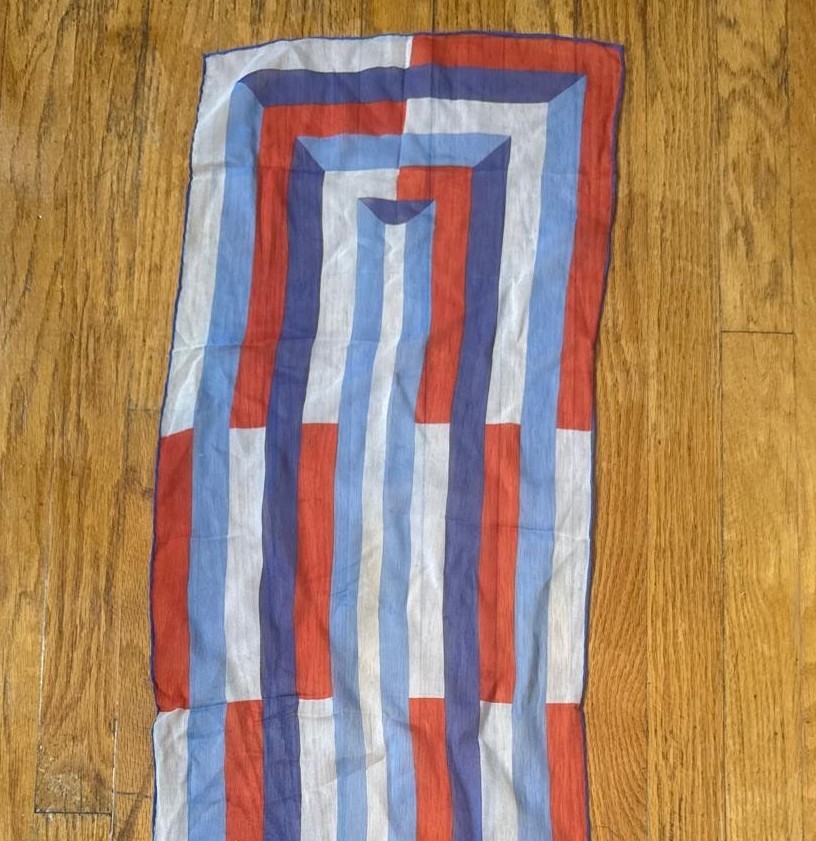 как выглядит VTG Vera Neumann 100 Silk Scarf Geometric Red Blue White Translucent Pattern фото