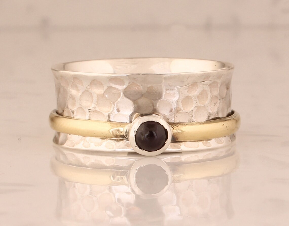 как выглядит Black Onyx Spinner Ring 925 Sterling Silver Handmade Fidget Band Ring FriendGift фото