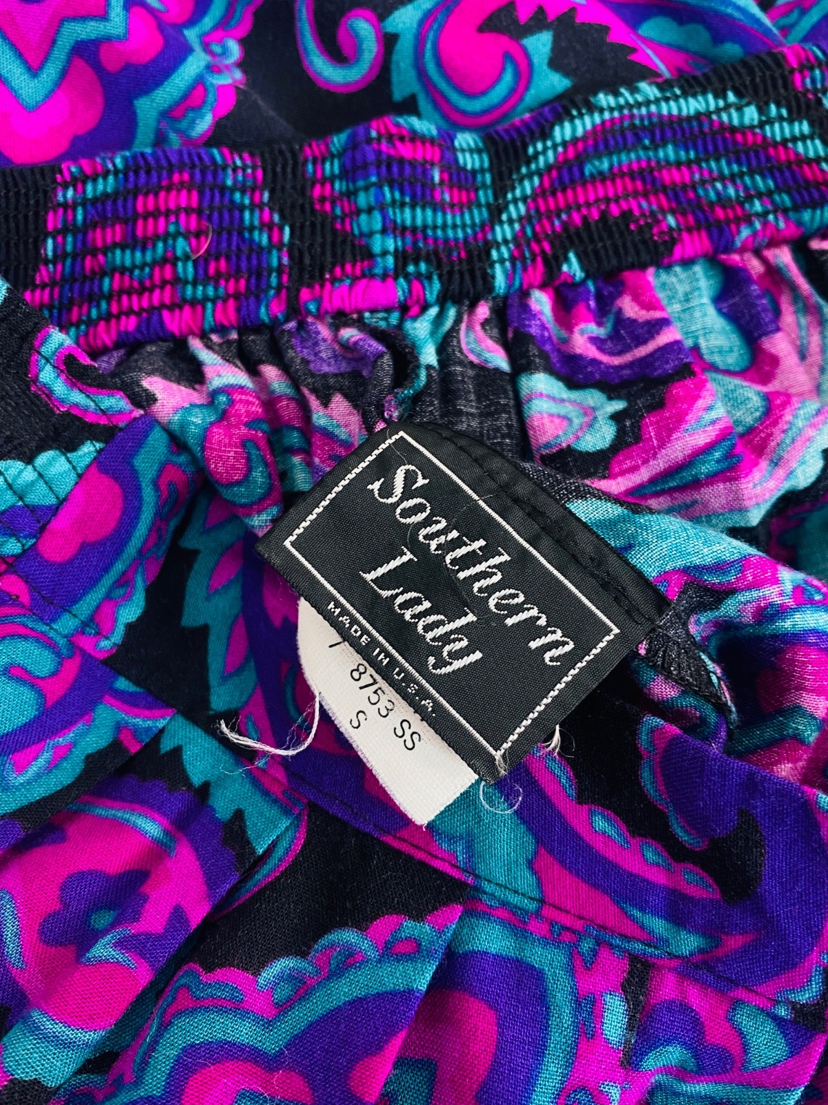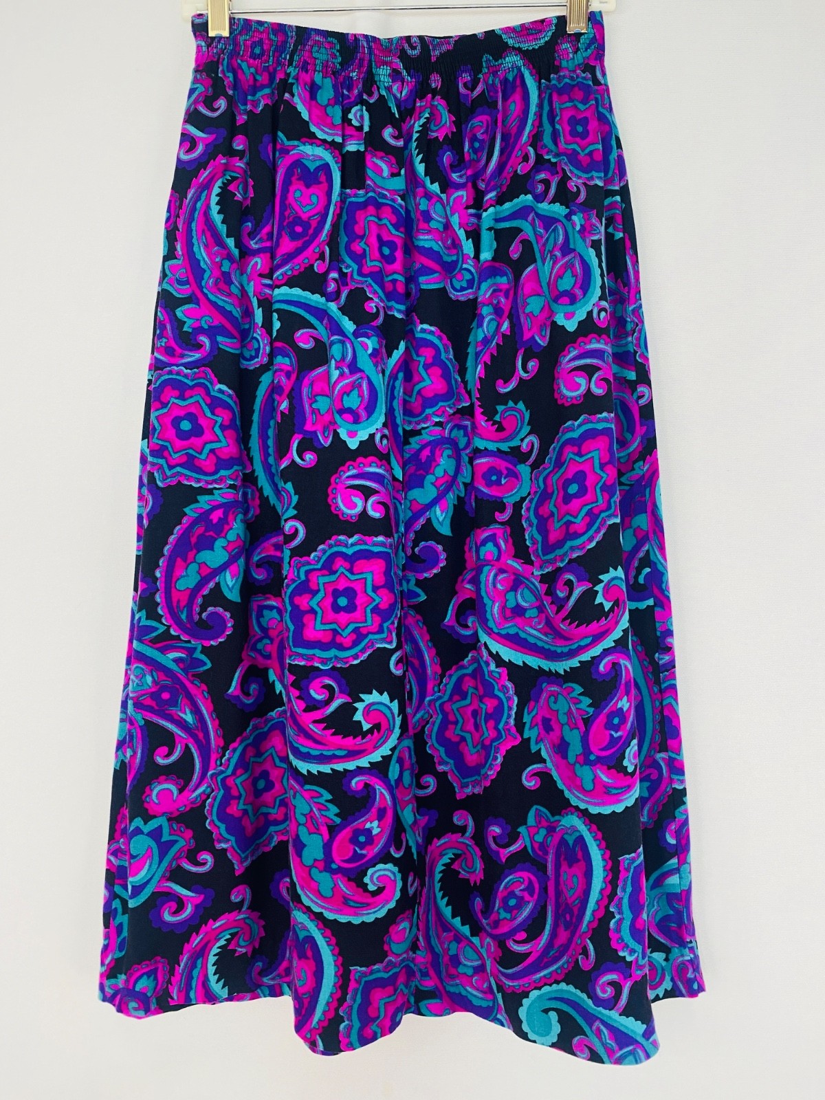 как выглядит Vintage 1990s purple paisley midi skirt S rayon teal black pockets turquoise фото